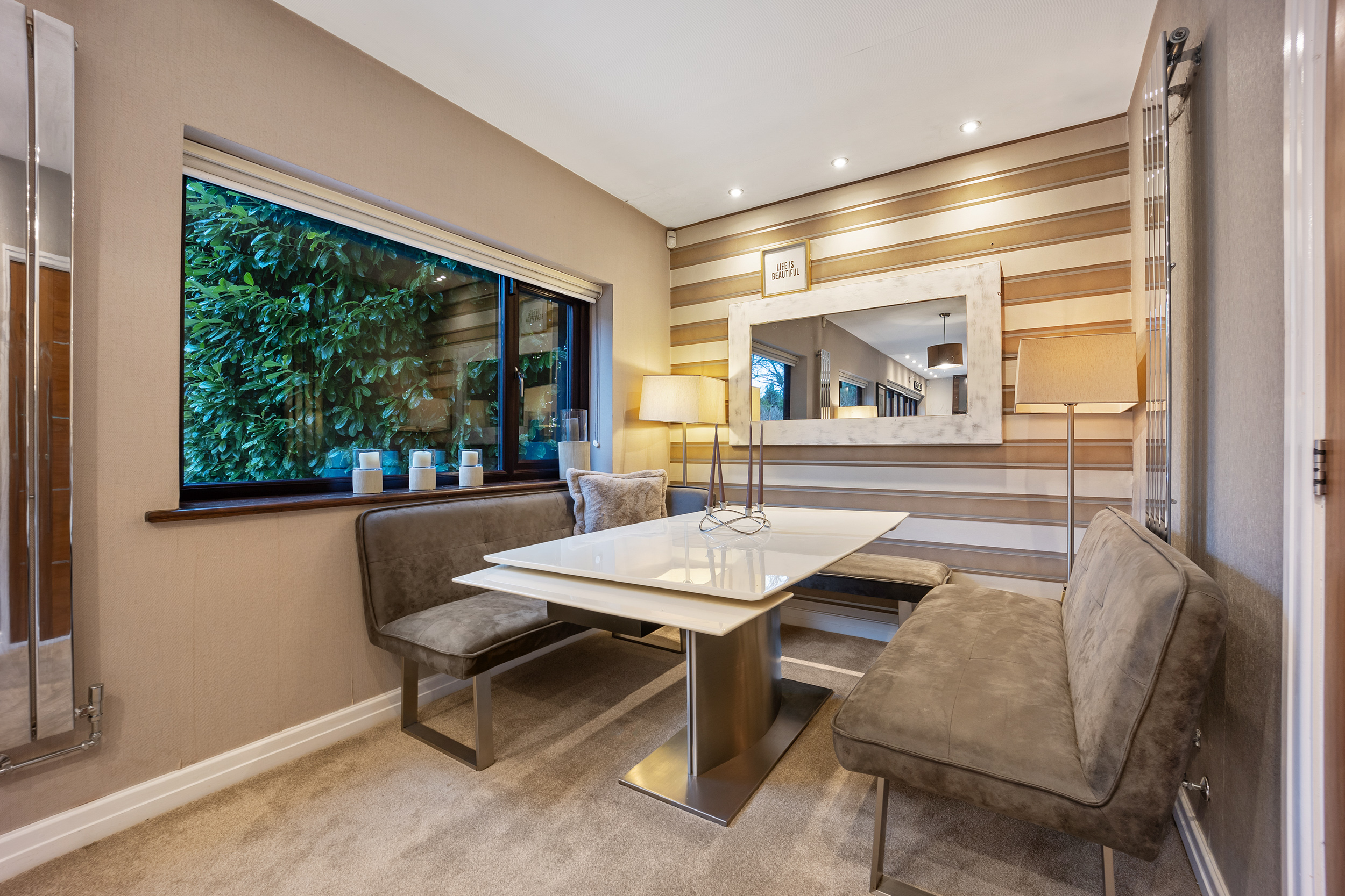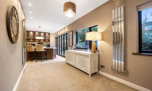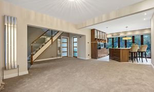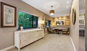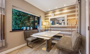At the heart of the home lies the open-plan kitchen, dining, and living area, designed with modern family life in mind. Installed around four years ago, the kitchen combines sleek cabinetry with integrated appliances - including new ovens, a steamer, dishwasher, and fridge, all included as seen. A hot tap adds everyday convenience, while the layout flows naturally into the dining space, forming a bright and sociable setting with direct connection to the garden beyond.