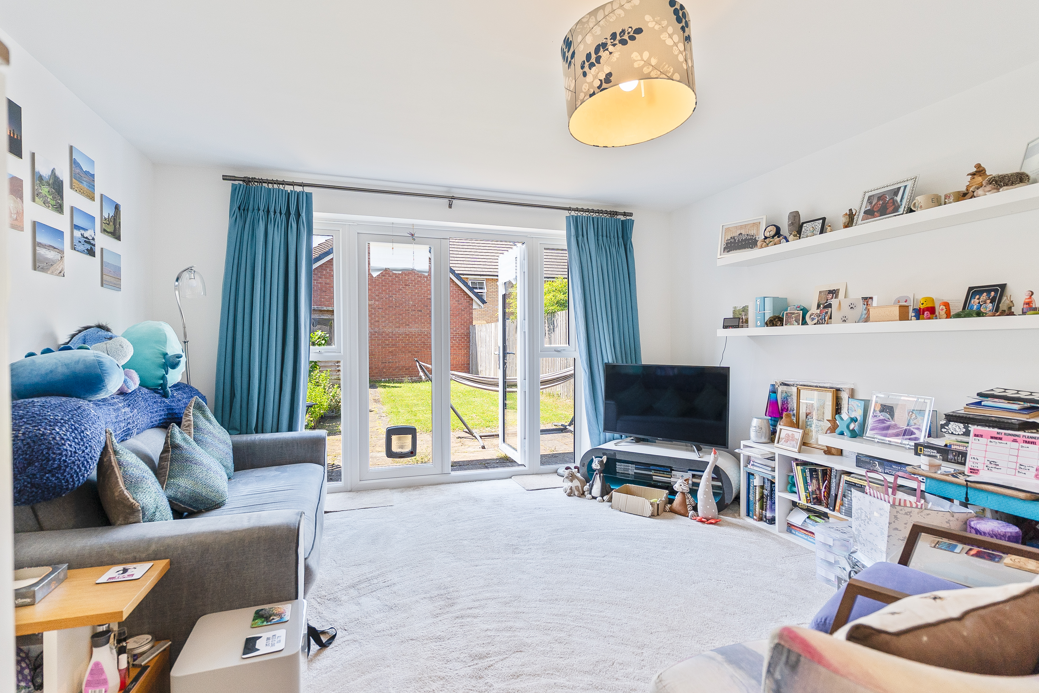 The ground floor of the property is bright, welcoming and well laid out. To the front, a stylish and modern kitchen is fitted with contemporary units and ample worktop space. To the rear is a spacious lounge/diner, offering plenty of room for both seating and dining furniture. French doors open directly onto the garden, creating a seamless flow between indoor and outdoor living—ideal for entertaining or simply enjoying a summer evening. The entrance hallway also provides access to a convenient downstairs cloakroom.