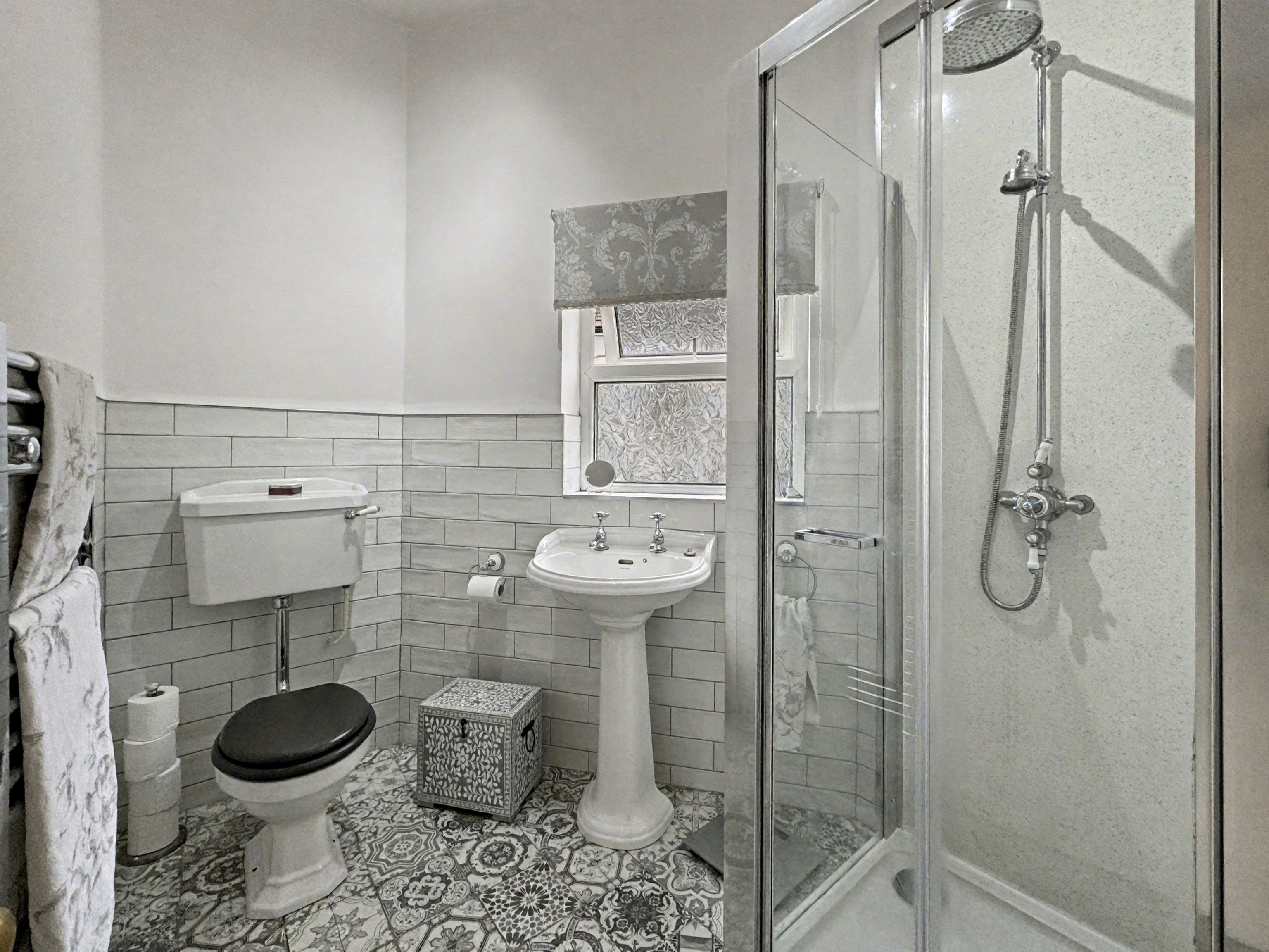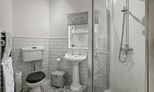 The house features three well-appointed bedrooms, each designed to provide comfort and privacy. The master suite bedroom, offers ample space for bedroom furniture creating a calm and comfortable retreat. They have also designed the space to create a walk-in wardrobe. The tiled bathroom offers a white three piece suit, which offers walk-in shower, guest wc and pedestal sink.