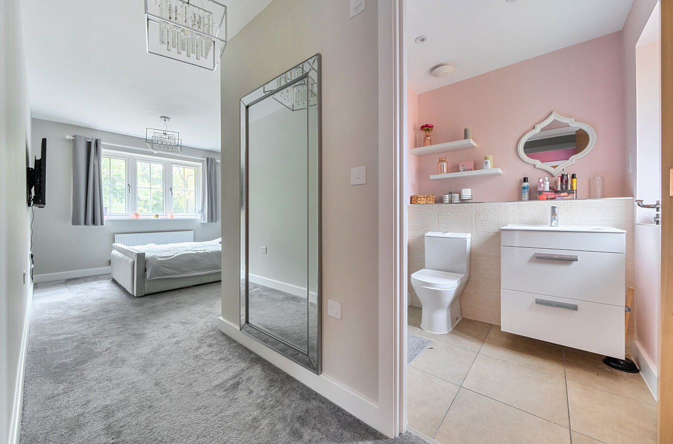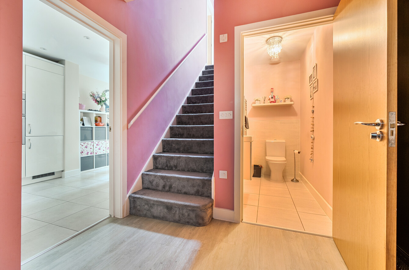 Part of the exclusive Forest Gate development of just thirty-four homes, the property is beautifully maintained and thoughtfully designed for contemporary living. The dual-aspect kitchen and dining room forms the heart of the home, featuring high-quality cabinetry, integrated appliances, and direct access to the garden. A useful utility room and a bright front-to-rear sitting room enhance the ground floor, complemented by a guest cloakroom.