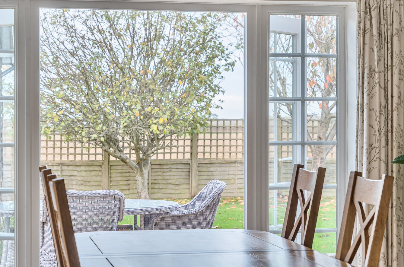 The gardens of the home wrap around 3 sides, all of which are mainly laid to lawn with flower & shrub borders, paved seating areas and views over the open farmland to the rear