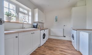 Entertain guests in the expansive 26ft x 13ft living room, while enjoying meals in the adjacent 13ft x 12ft dining room. The property offers captivating views towards the Southdowns, enhancing the overall appeal of the residence. Enhanced and updated since 2022, this home features modern touches and conveniences, including a contemporary new kitchen that will surely delight the discerning chef and matching utility room. The property also features wrap-around gardens extending to approximately 0.23 acres, providing ample space for outdoor enjoyment and relaxation.