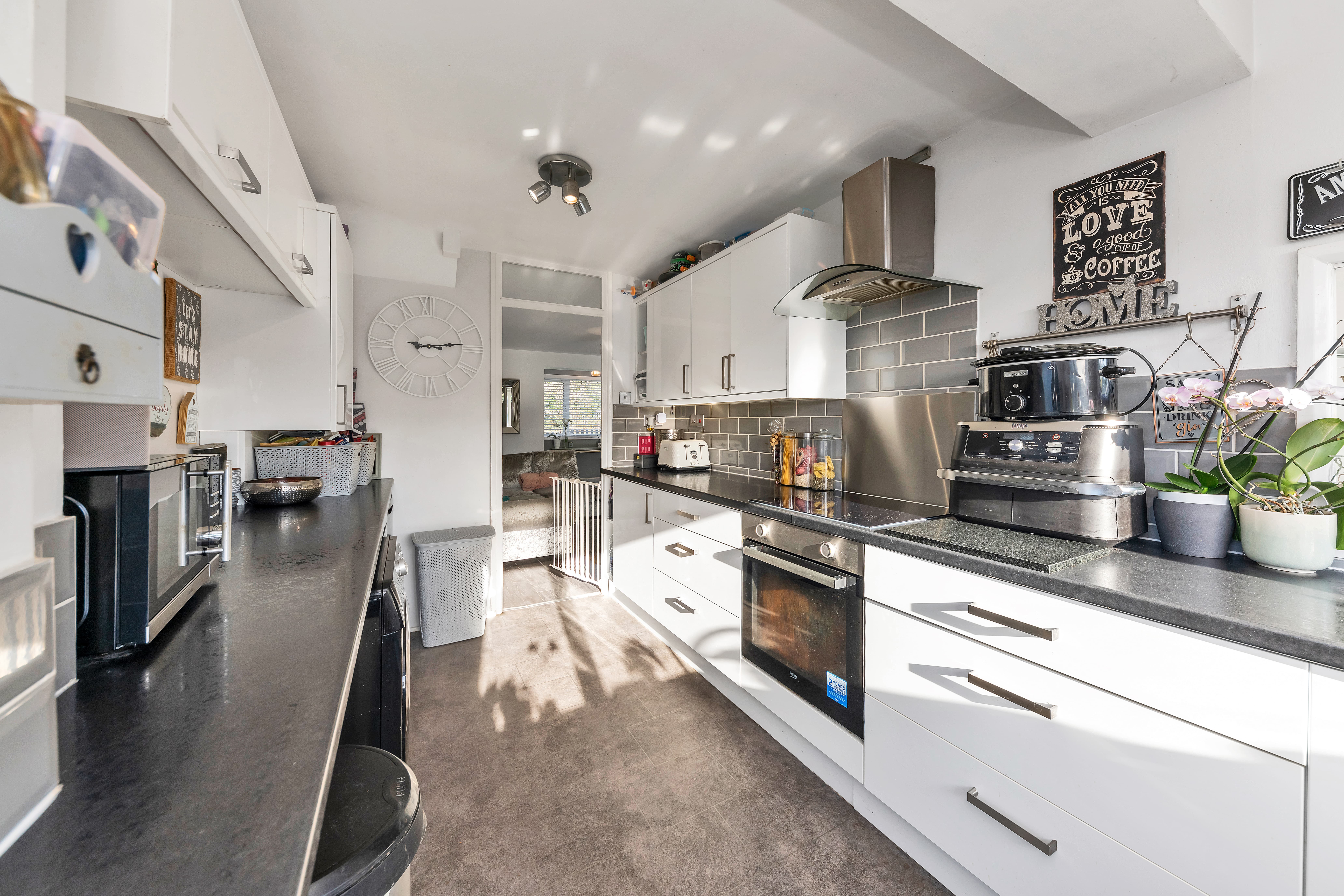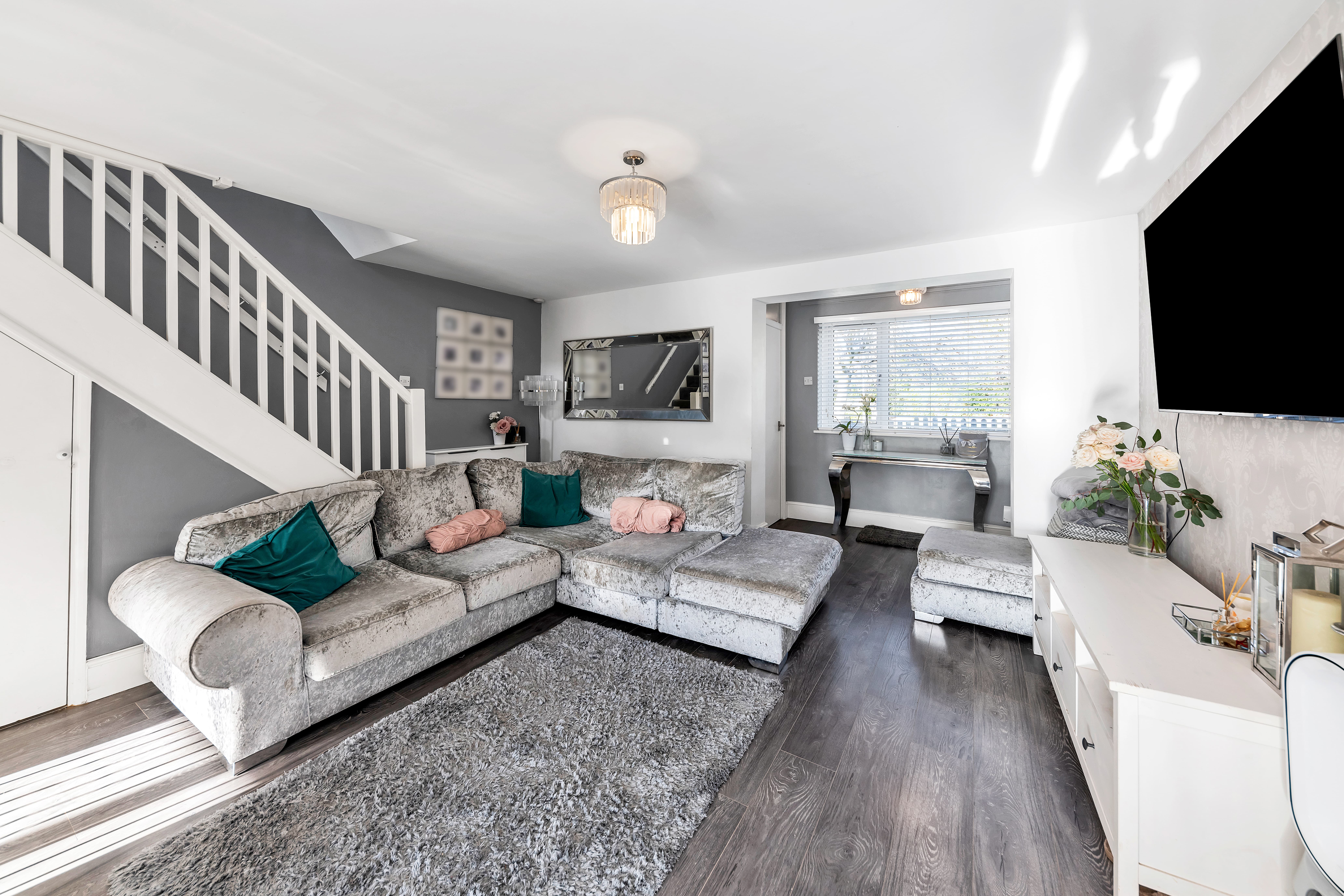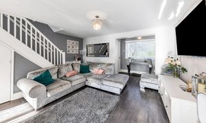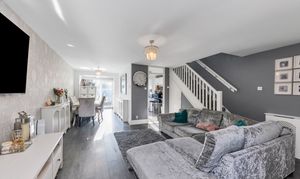 This well-presented home enjoys a tidy and pleasant frontage, front lawn gardens, surrounded by a picket fence, with borders of decorative stones and plenty of space for potted plants. Upon stepping inside, the entrance hallway is bright and welcoming, enjoying laminate flooring, pendant lighting, storage for coats and shoes, and access through to the downstairs living accommodation, including a cloakroom WC.