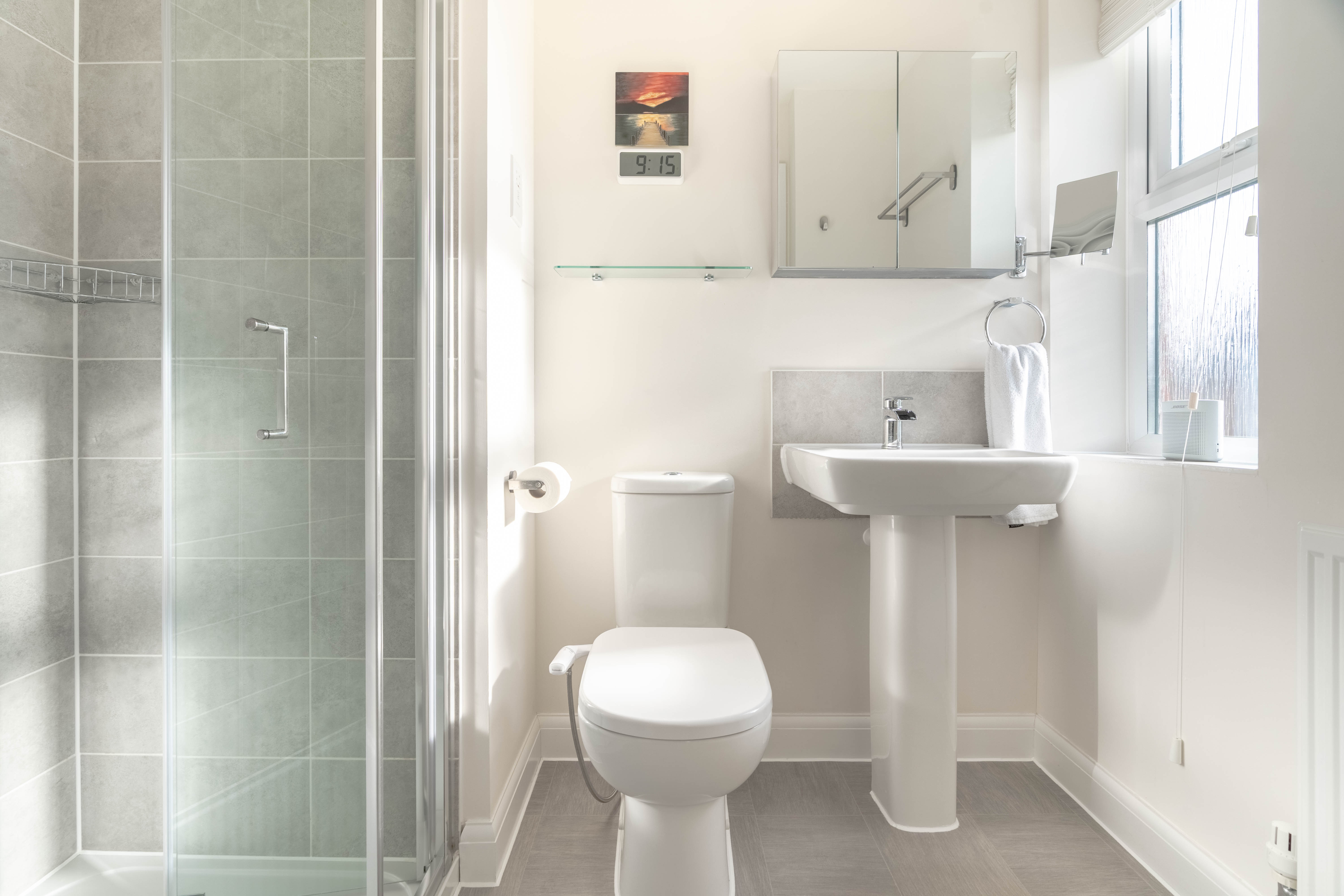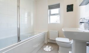 On the first floor there are three bedrooms - Bedroom 1 is a duel aspect double room with windows to the front and side, and benefits from an ensuite shower room and fitted wardrobe with sliding mirrored door. Bedroom 2 is a second duel aspect double room with a has a built-in wardrobe and built in cupboard over the stairs. Bedroom 3 is a single room and there is a family bathroom with shower over the bath.
