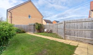 The rear garden is enclosed with a brick wall to one side and is laid to lawn with raised beds along the border, a patio and pathway leads to a timber shed. Gated rear access leads round to the double-length driveway. To the front and right side of the house is a shallow front garden which is laid lawn with bushes and shrubs, and enclosed by a low brick wall.