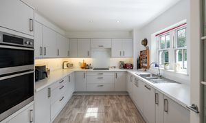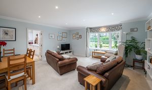 The apartment itself is situated on the ground floor and offers a wonderfully large and light south facing reception room with bay window to the front leading through to a well-presented kitchen with a good range of fitted units and enjoying an enviable outlook over the manicured gardens to the front. There are two good sized double bedrooms both with fitted wardrobes, further views to the garden and the master bedroom benefits from a three piece en-suite with WC, walk-in-shower and bath. Down the entrance hall there is additional built in storage and a separate WC, formally a bathroom but now converted into a convenient utility space with washing machine and tumble dryer.
