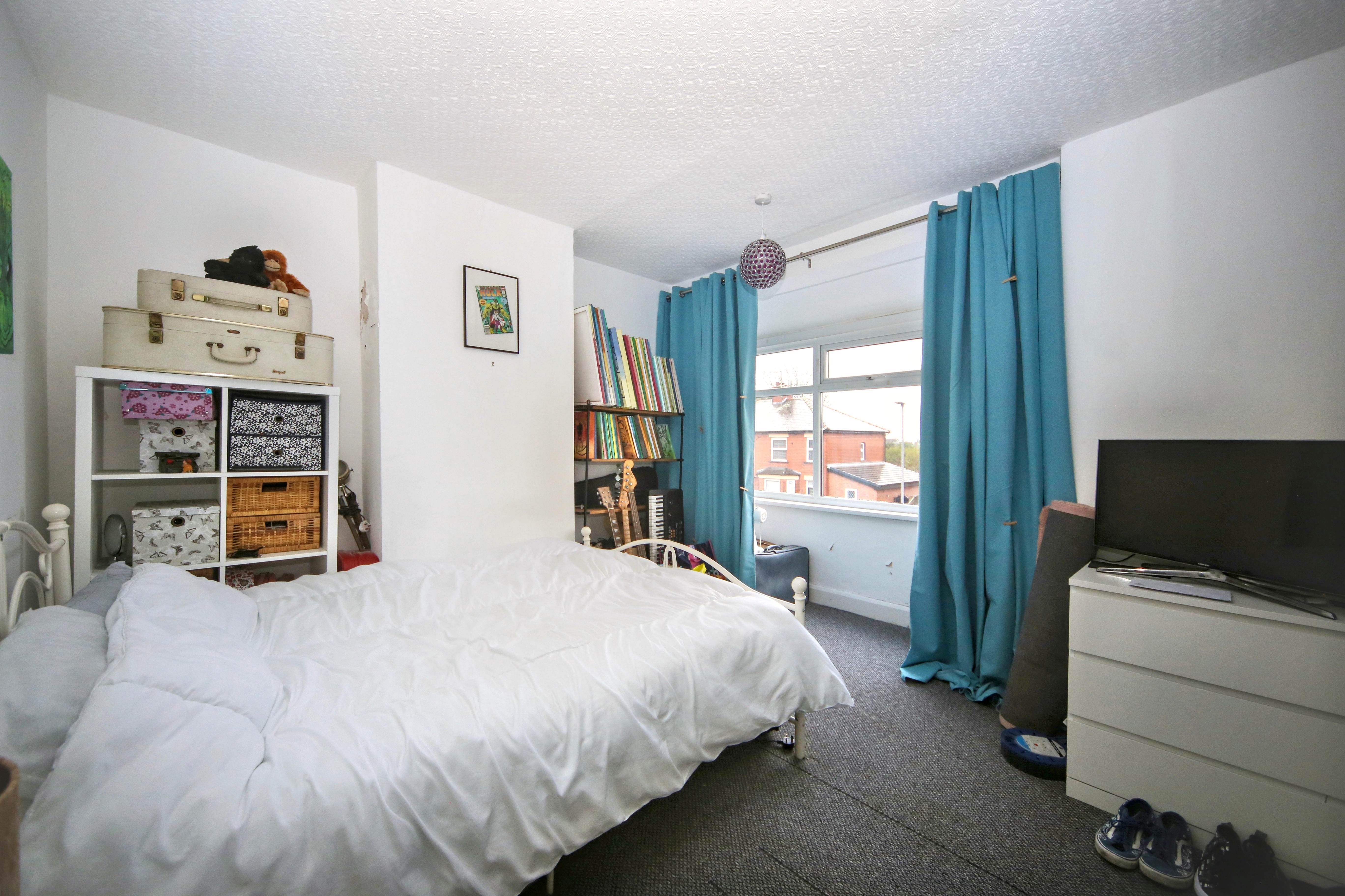 - Two generous bedrooms, one with bay window.