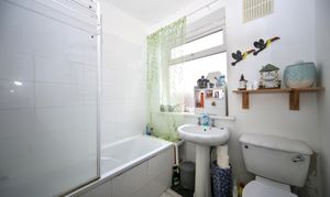Upstairs, there are two well proportioned bedrooms, including a spacious double and a particularly large principal bedroom with a bay window, creating a bright and airy feel. A family bathroom completes the first floor.