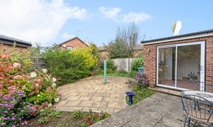The 34’ x 32’ west facing garden is predominantly paved with well stocked borders, water supply and side access.