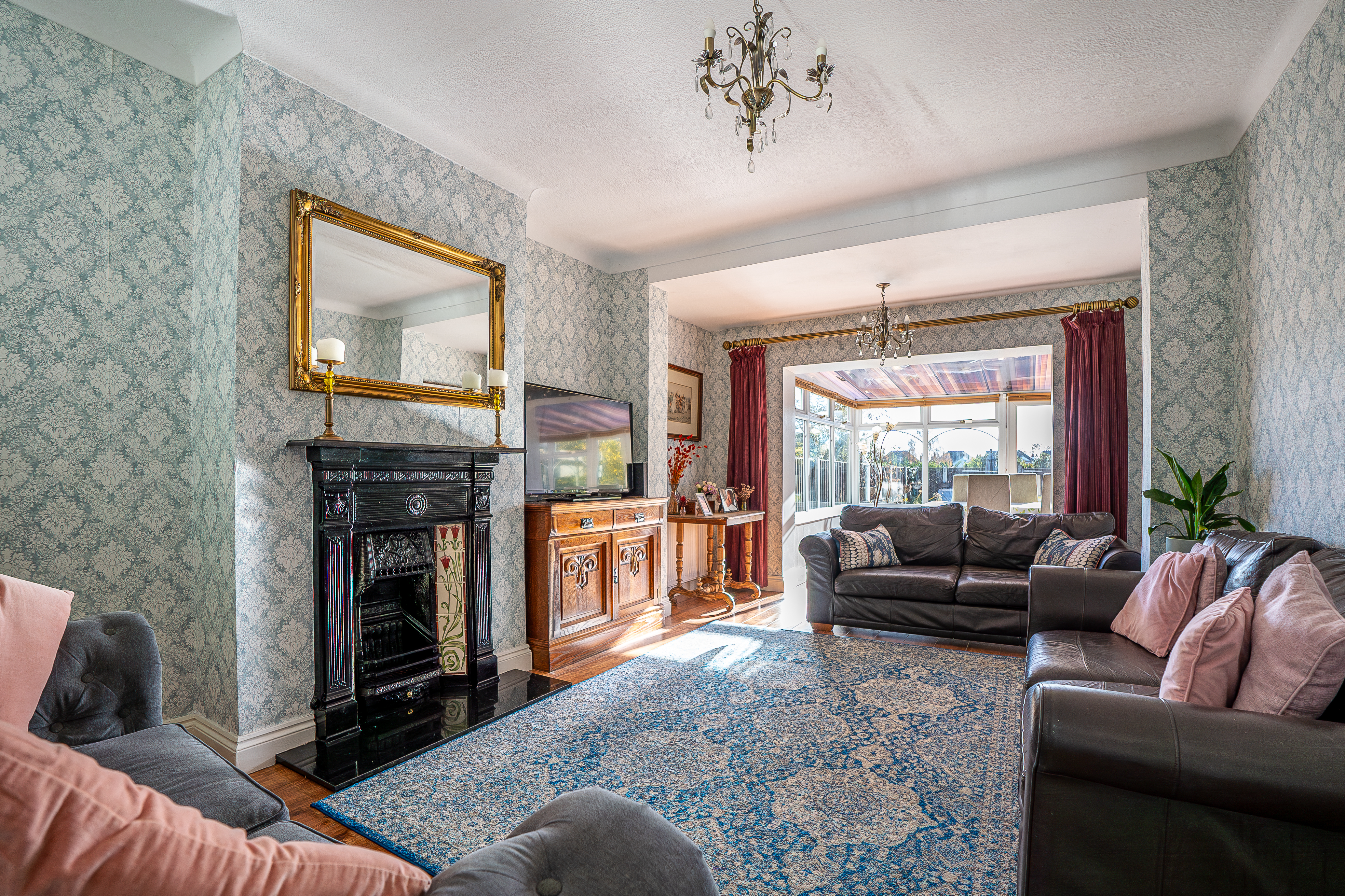 One of the standout features of this home is the full-width rear sun lounge/conservatory, which floods the space with natural light and enhances the overall living experience.