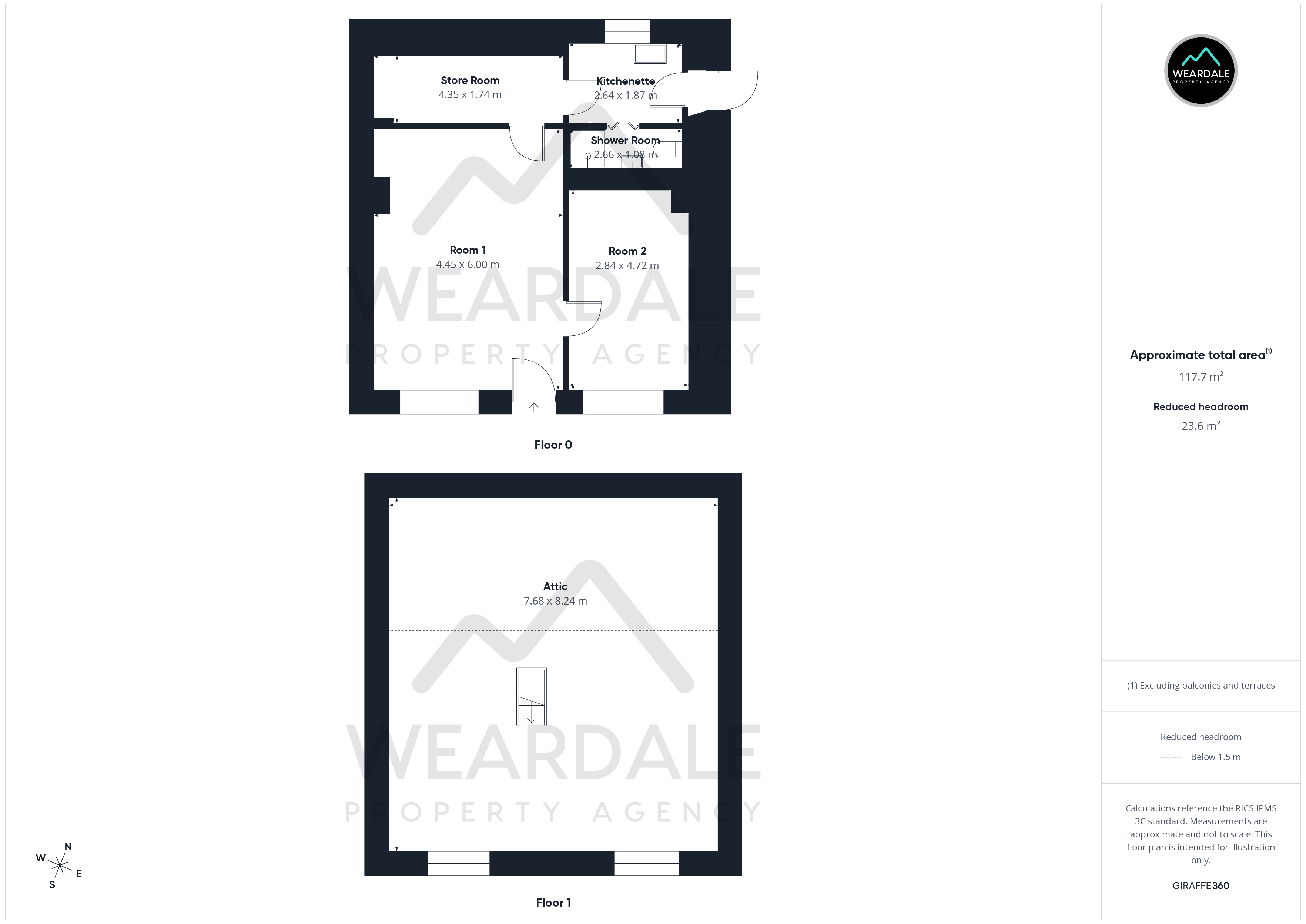 The spacious ground floor is currently arranged as two generous main rooms, providing flexible work areas. A useful store room to the rear offers additional storage or archiving space, enhancing the property’s functionality. The kitchenette is conveniently located for staff use, while a WC and shower room add further practicality for day-to-day operations.