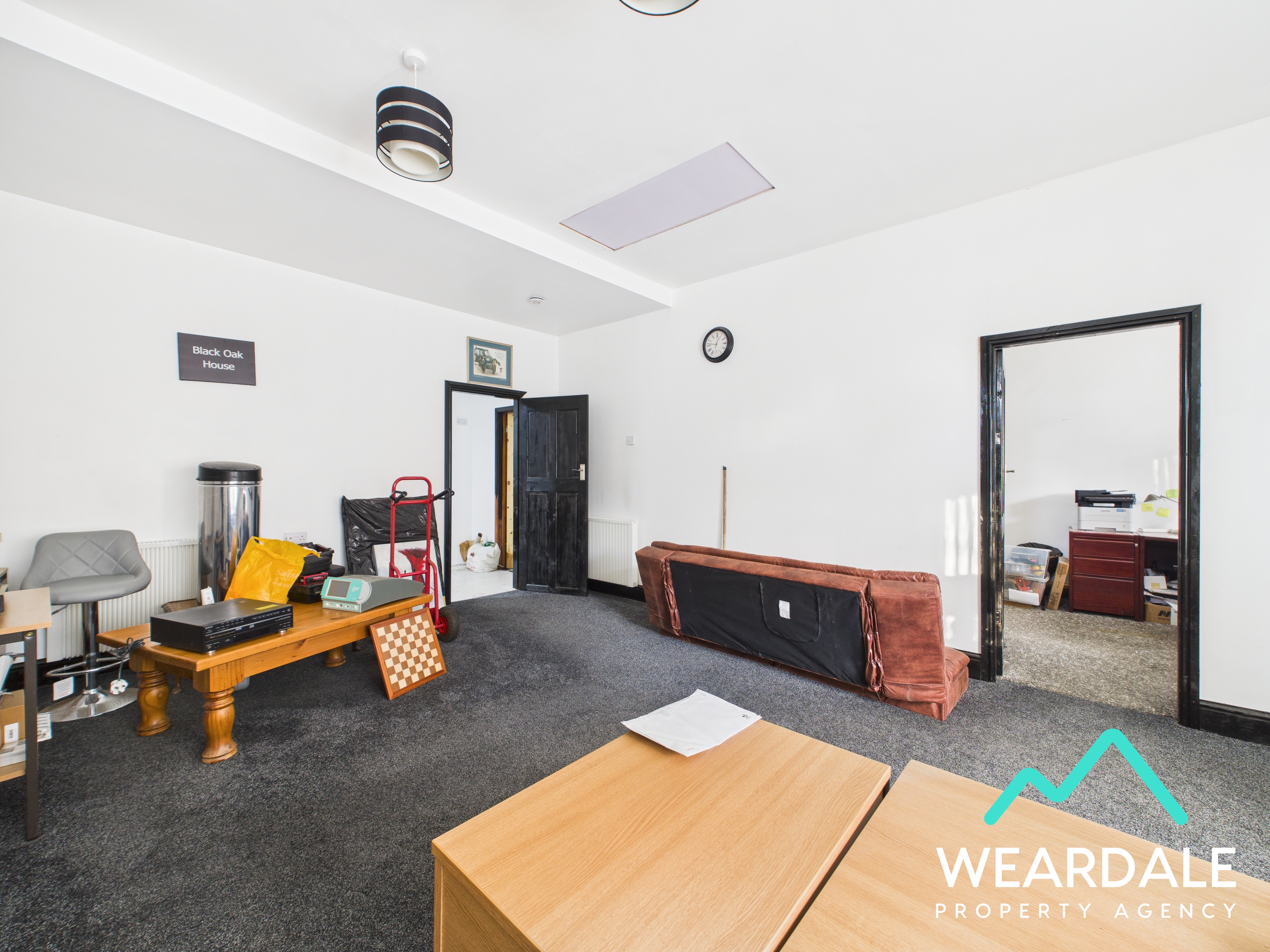 - Positioned to the front of the property and accessed internally through a doorway from room 1 - The wall separating room1 and room 2 is a stud wall and could easily be removed to open up the commercial floor space further if desired - uPVC window to the Southern aspect - Carpeted - Neutrally decorated - Ceiling light fittings