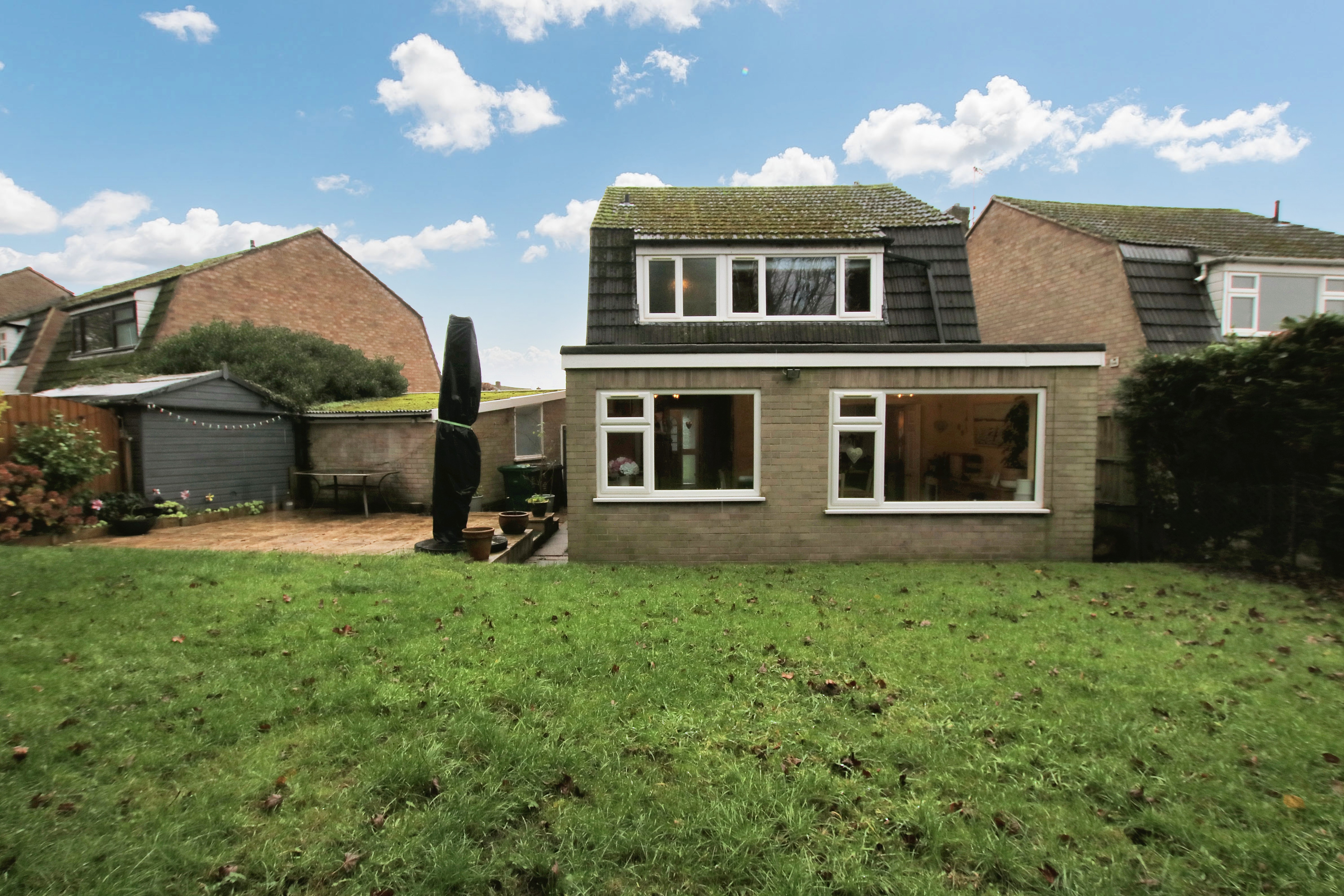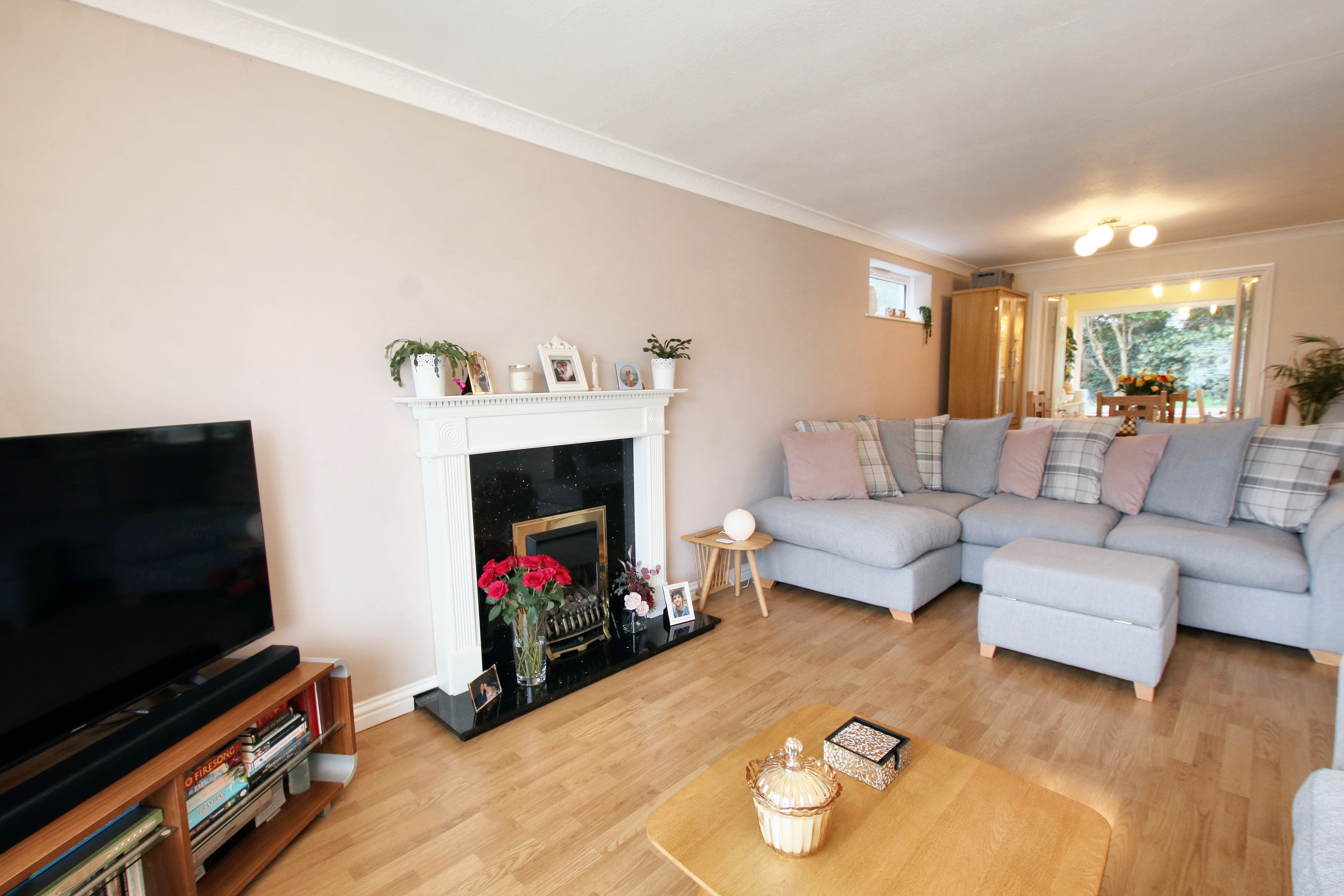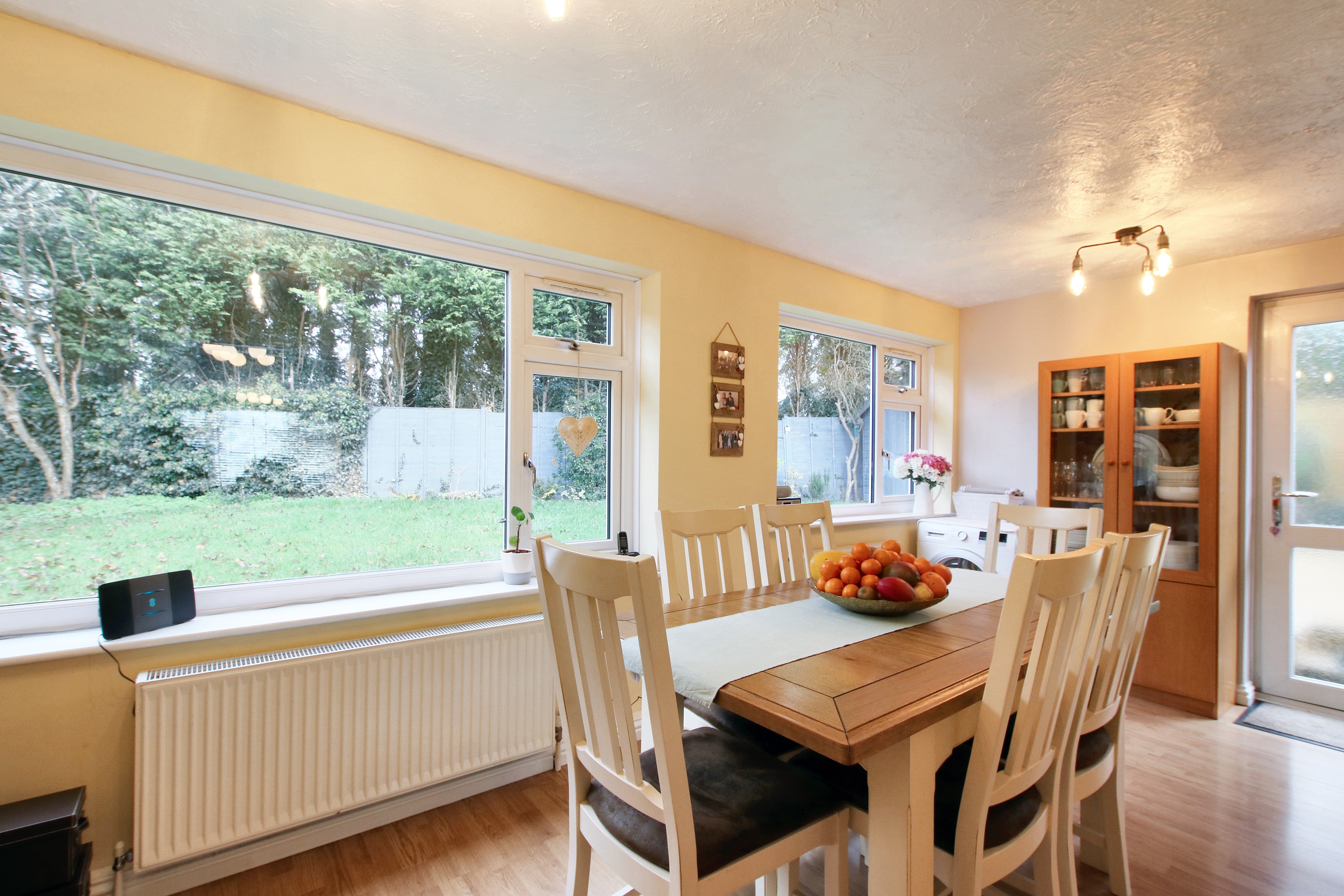 One of the things I really love about this home is the garden. Being set on a corner plot means the outdoor space wraps beautifully around the back of the house, giving you a generous garden to enjoy. There’s a patio area that makes the perfect spot for sitting out with a coffee or hosting friends, while the lawn is framed by mature trees that keep everything feeling private and peaceful. At the very back, there’s just one neighbouring residence, so that sense of privacy carries on, it’s a garden that feels like your own little retreat.”