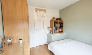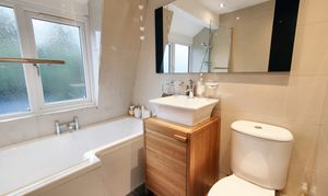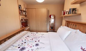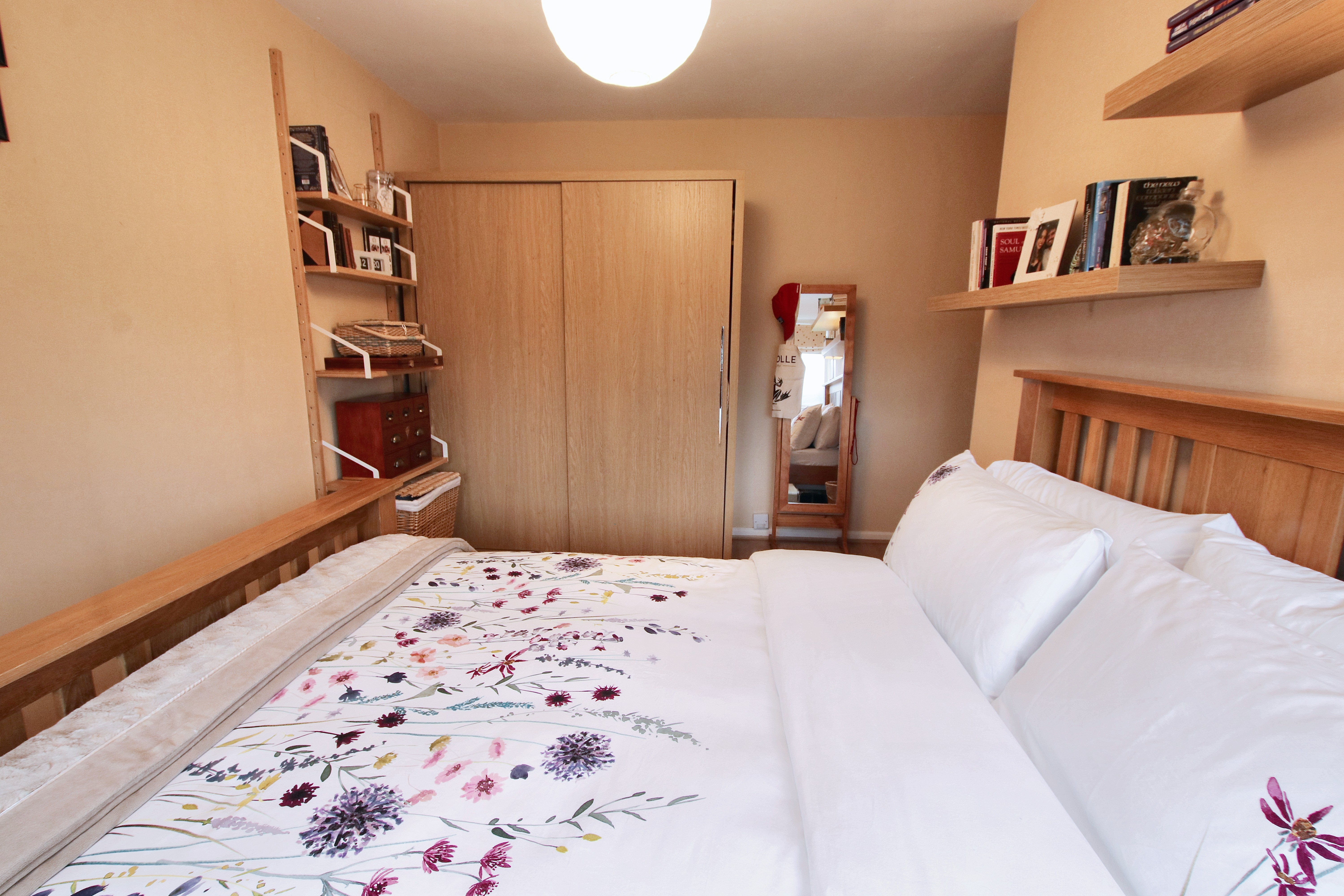 Upstairs is just as impressive, with three double bedrooms. The main bedroom has built-in furniture, which I think is a great way to maximise storage without cluttering the space. And the family bathroom has been modernised with an overhead shower, it’s the perfect space to unwind after a busy day.