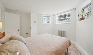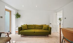 Spread across 591 SQFT (approx.) of the lower ground floor, the property comprises of a separate, well-fitted kitchen with integrated appliances, and tiled splash-back, a spacious reception room with wooden flooring, fitted storage and leading out to the private rear garden. The bathroom is beautifully presented, with a free-standing bathtub; with a wall mounted shower attachment, Terrazzo floor tiles and heated towel rail. The primary bedroom is bright and airy and has a projector above the bed, with a remote controlled drop-down screen. The second bedroom would also work perfectly as a home office.