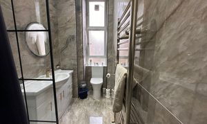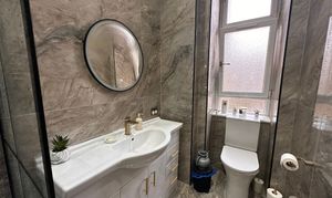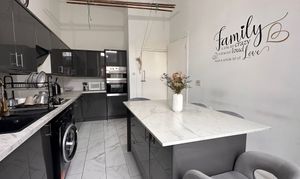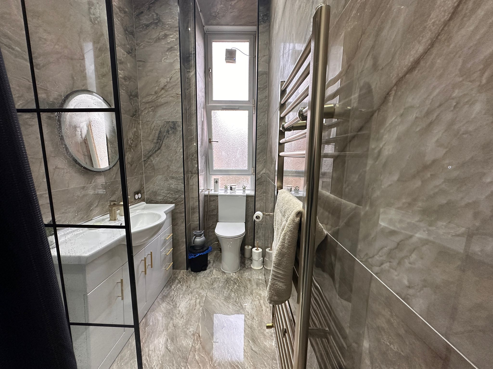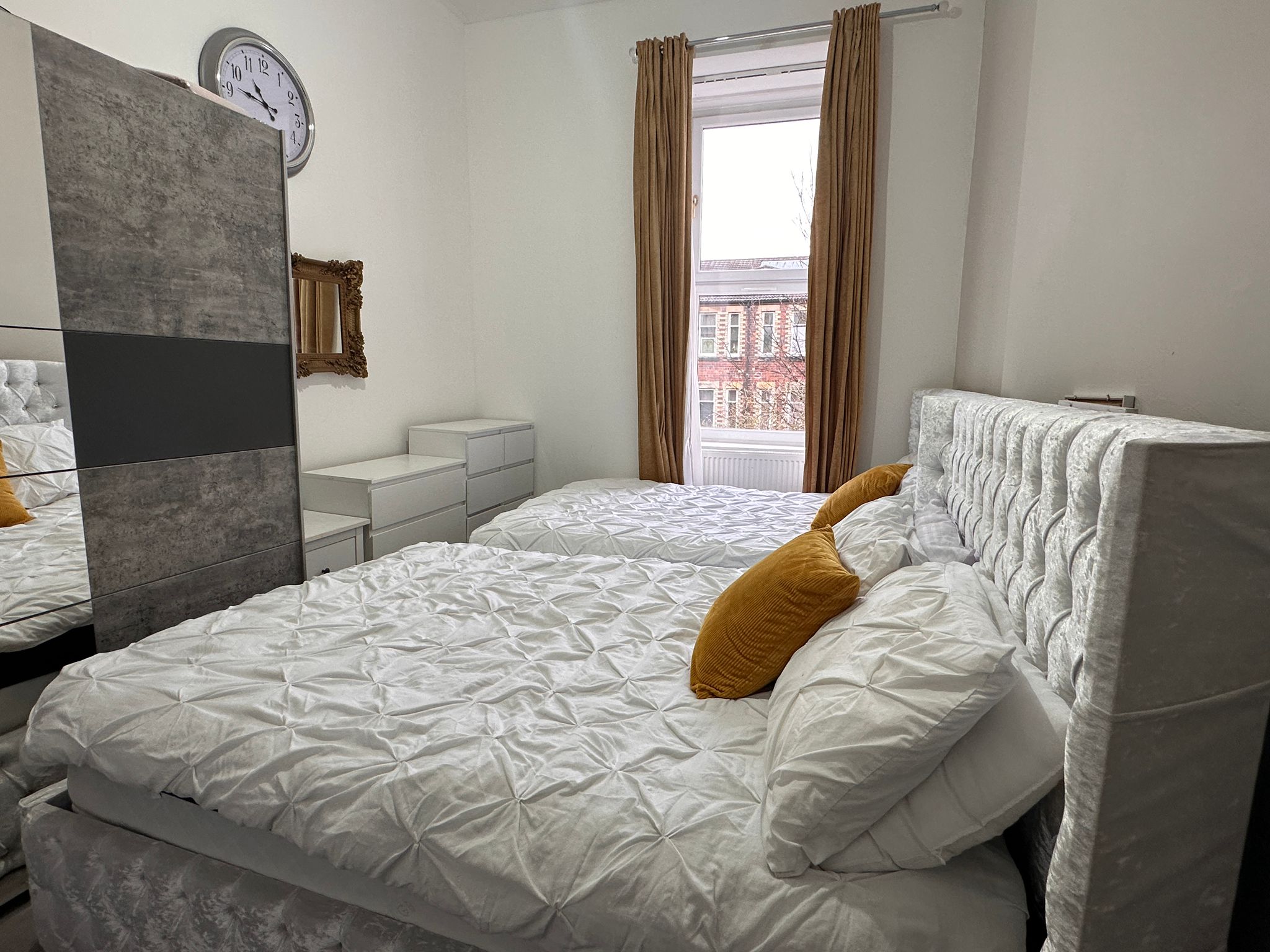 The property has been thoughtfully modernised to a high standard throughout, offering a harmonious blend of contemporary design and period features such as high ceilings, which create an inviting sense of space and light. Upon entering, you are welcomed by a generous hallway that leads to three substantial double bedrooms, each providing ample space for furnishings and storage (ideal for families, professional sharers, or those seeking flexible accommodation).