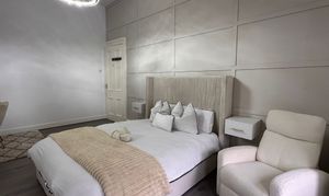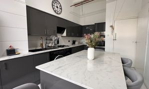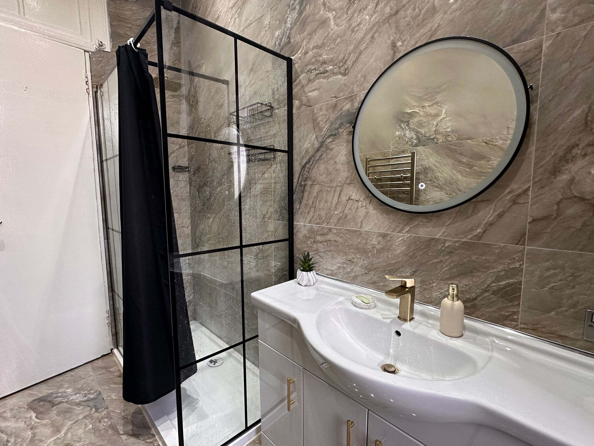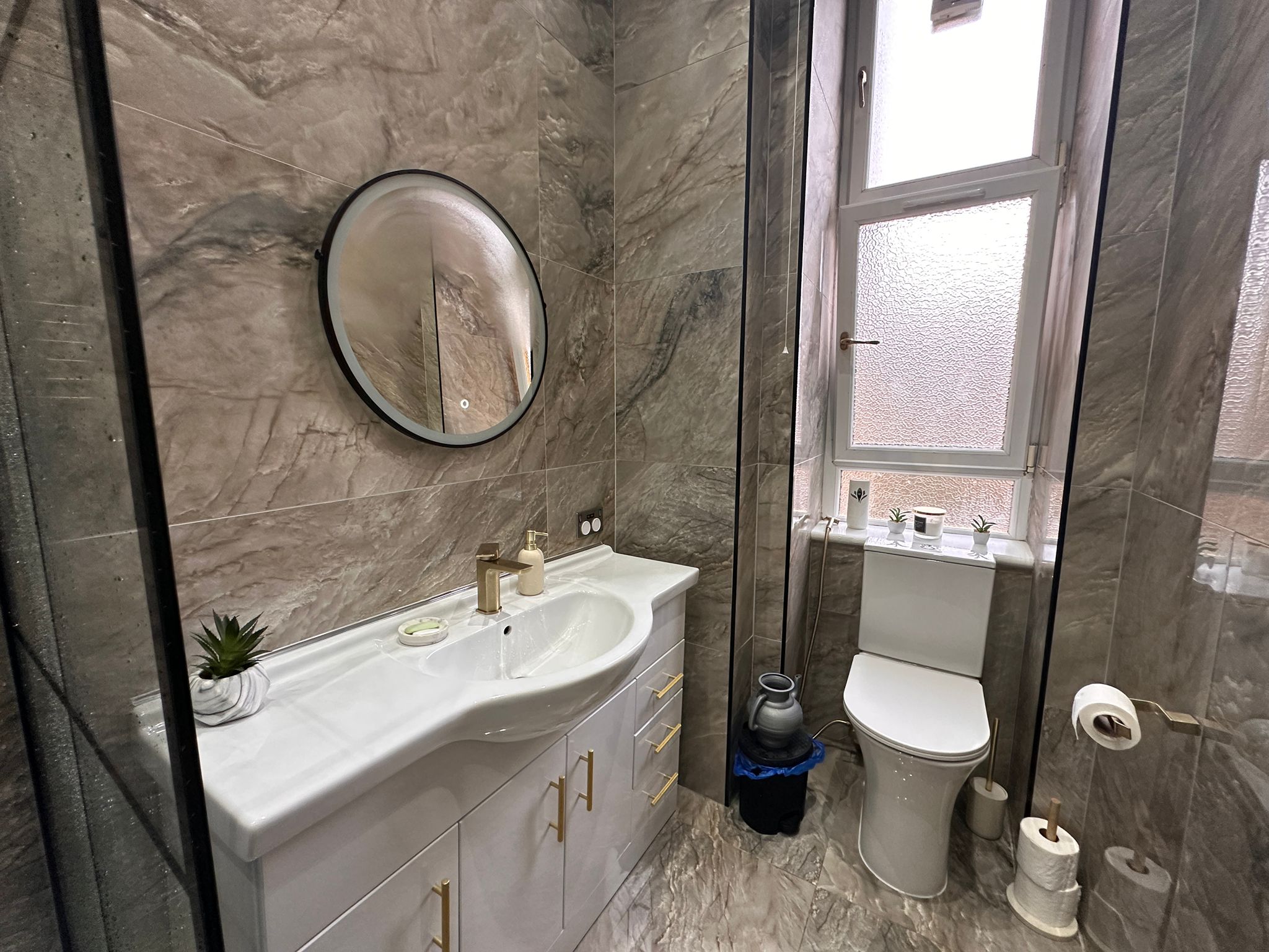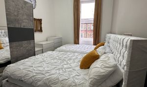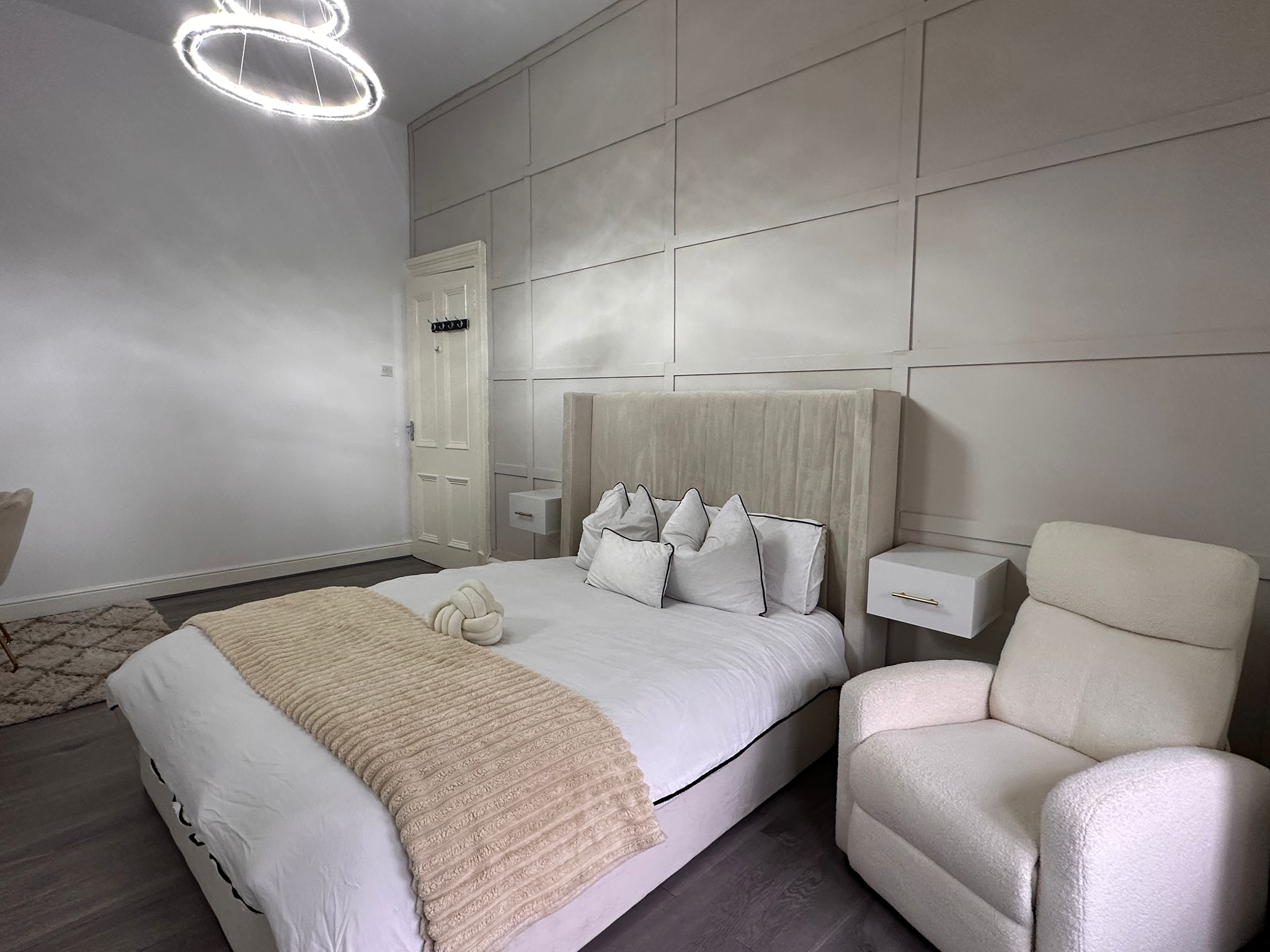 The property has been thoughtfully modernised to a high standard throughout, offering a harmonious blend of contemporary design and period features such as high ceilings, which create an inviting sense of space and light. Upon entering, you are welcomed by a generous hallway that leads to three substantial double bedrooms, each providing ample space for furnishings and storage (ideal for families, professional sharers, or those seeking flexible accommodation).