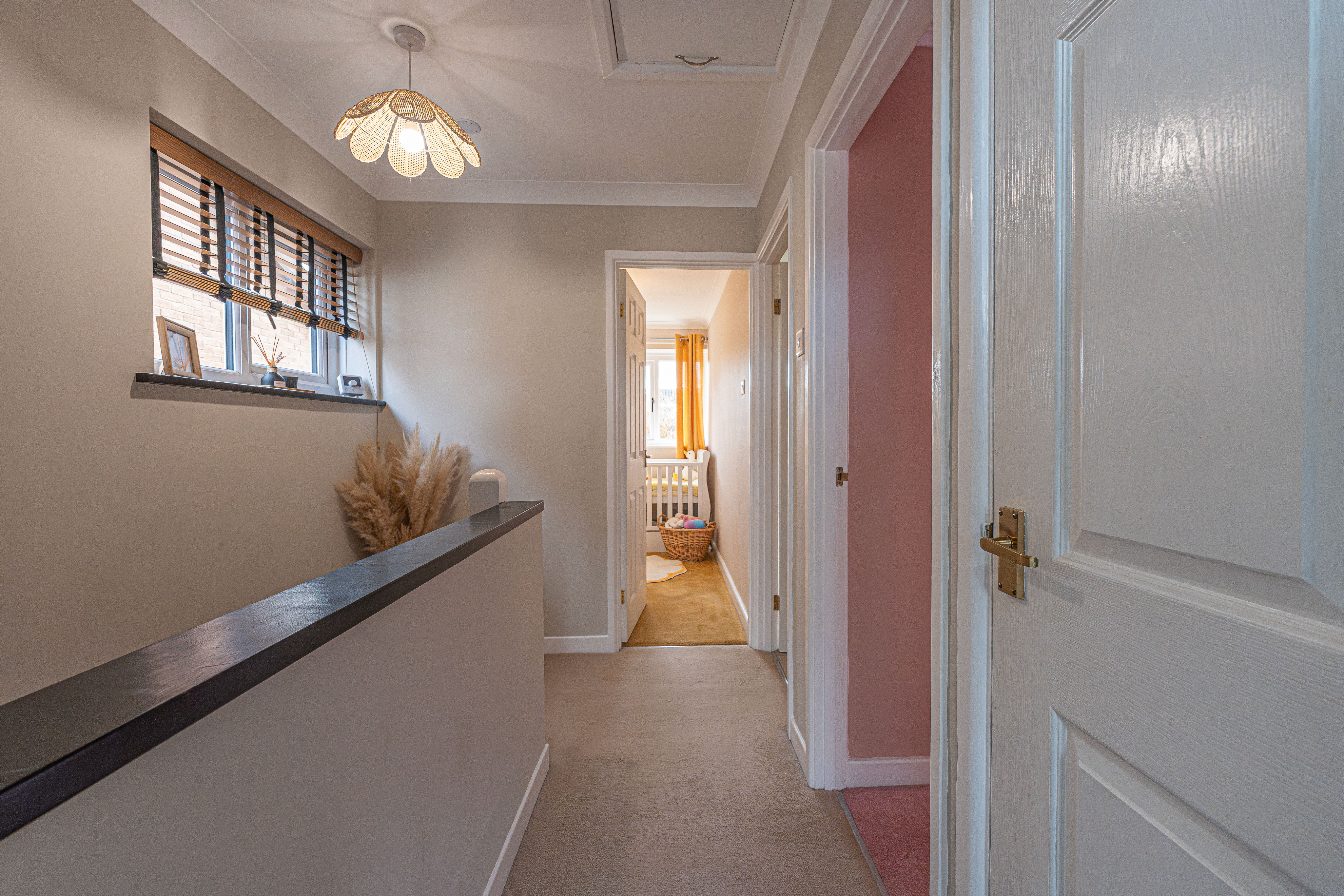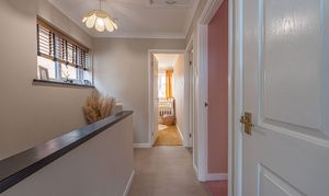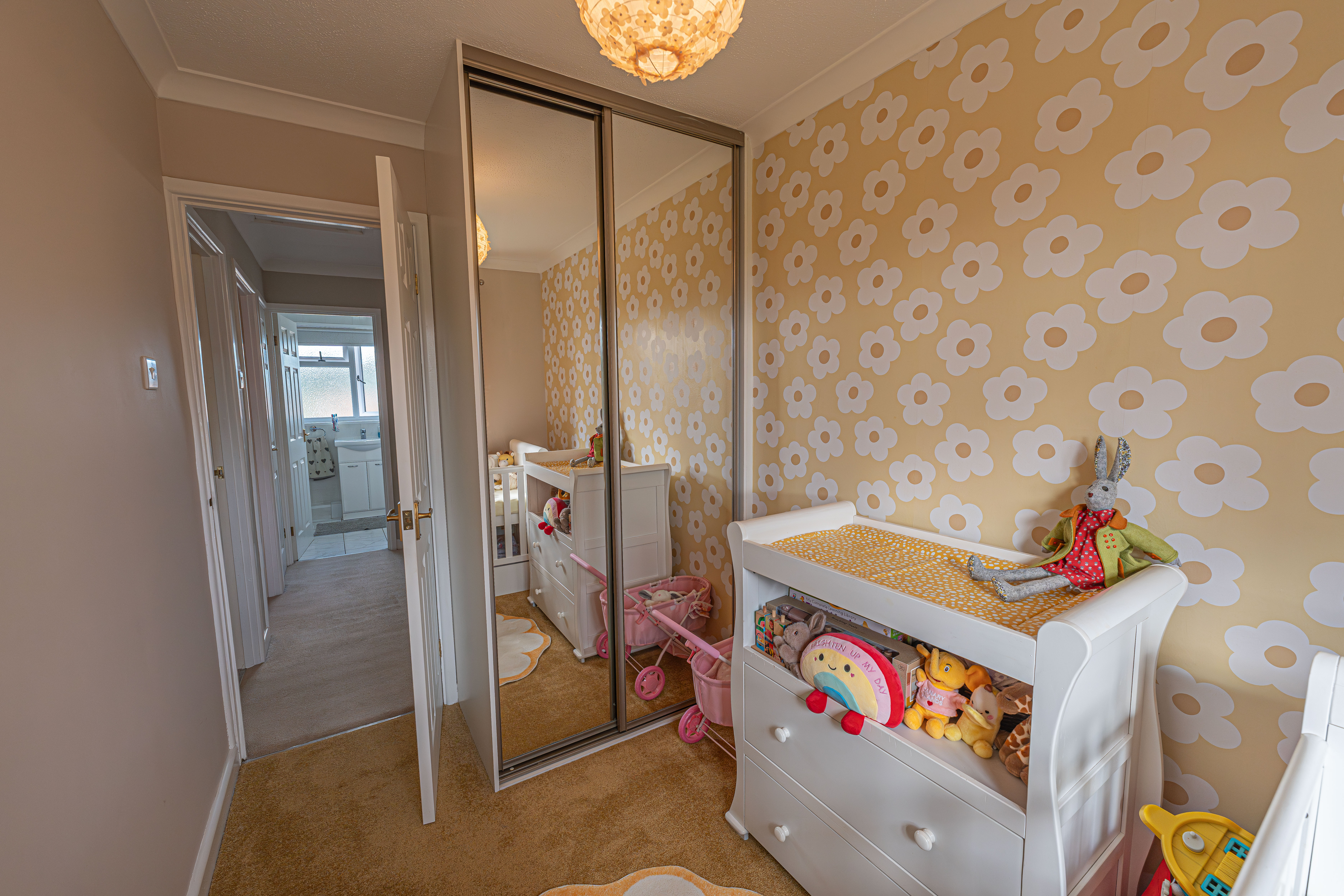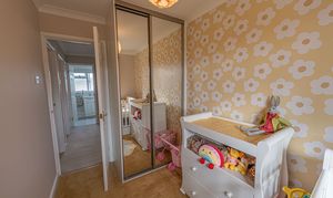 To the first floor, we have the three bedrooms, two of which are double in size with the third being a comfortable single , with the latter being particularly well suited to a nursery, home office or dressing room. From the hallway we can family bathroom with a bath suite and shower, while a helpful airing cupboard can be found from the hallway. Further storage is available throughout the bedrooms, with sliding mirrored wardrobes in one of the double rooms, and another in the single.