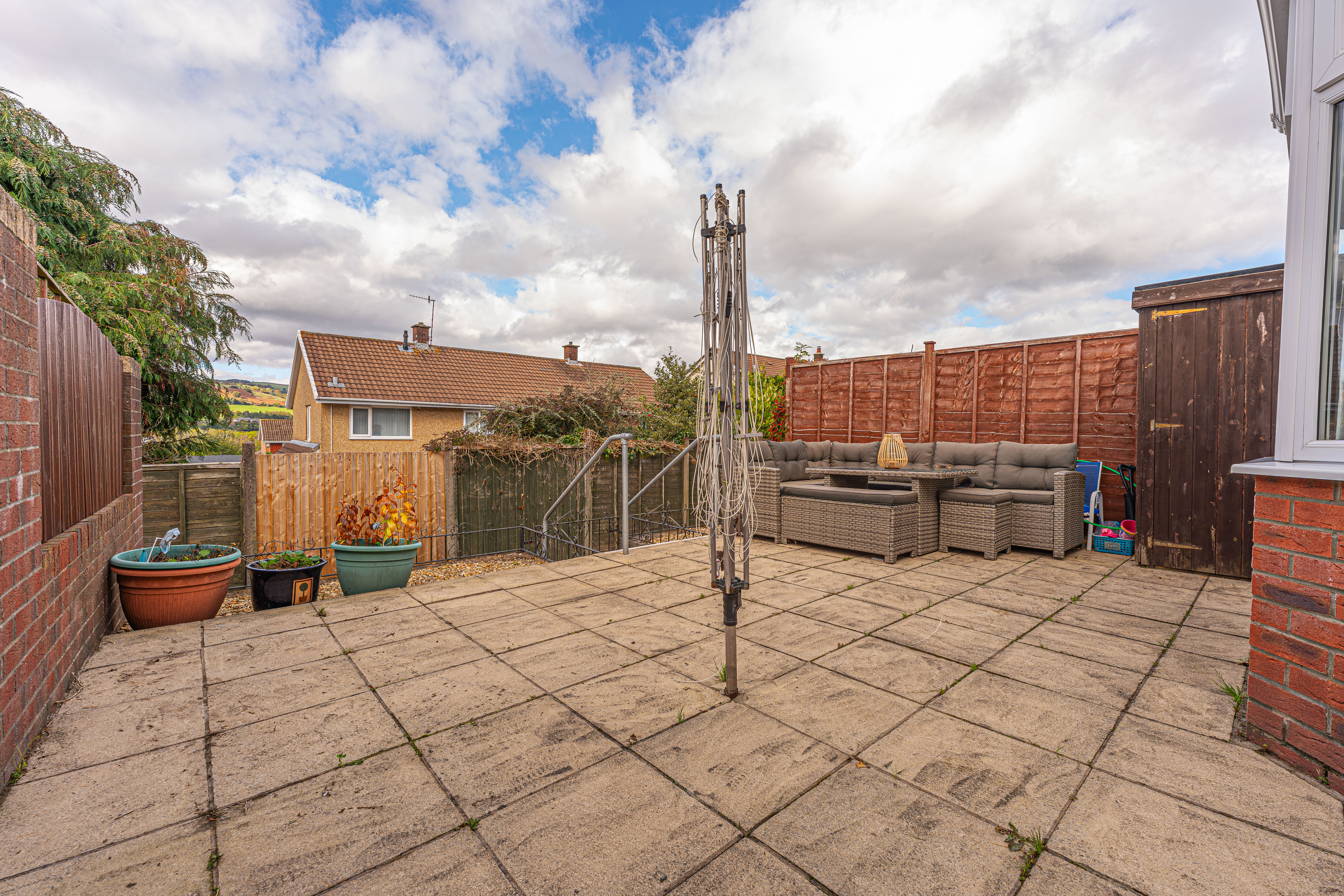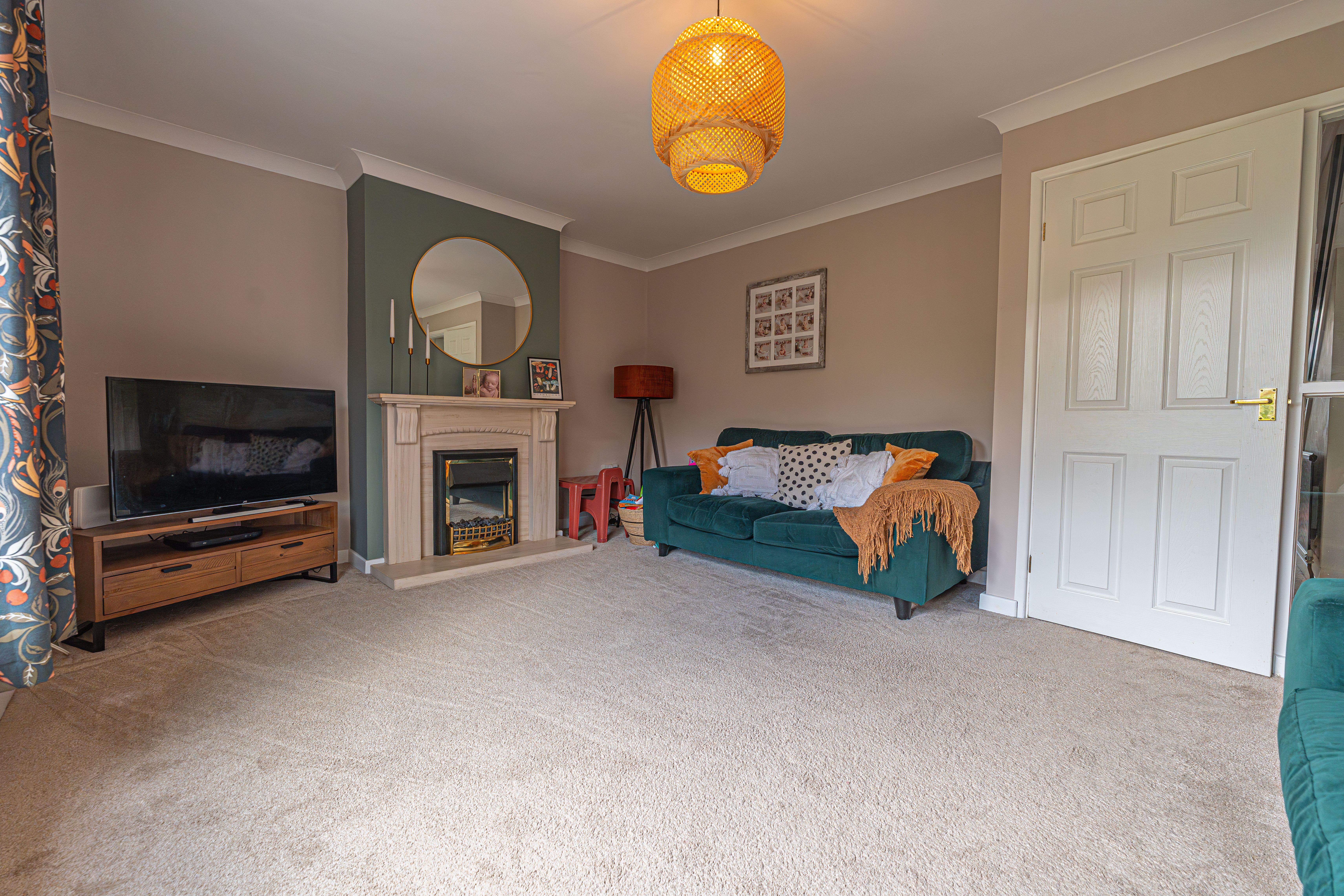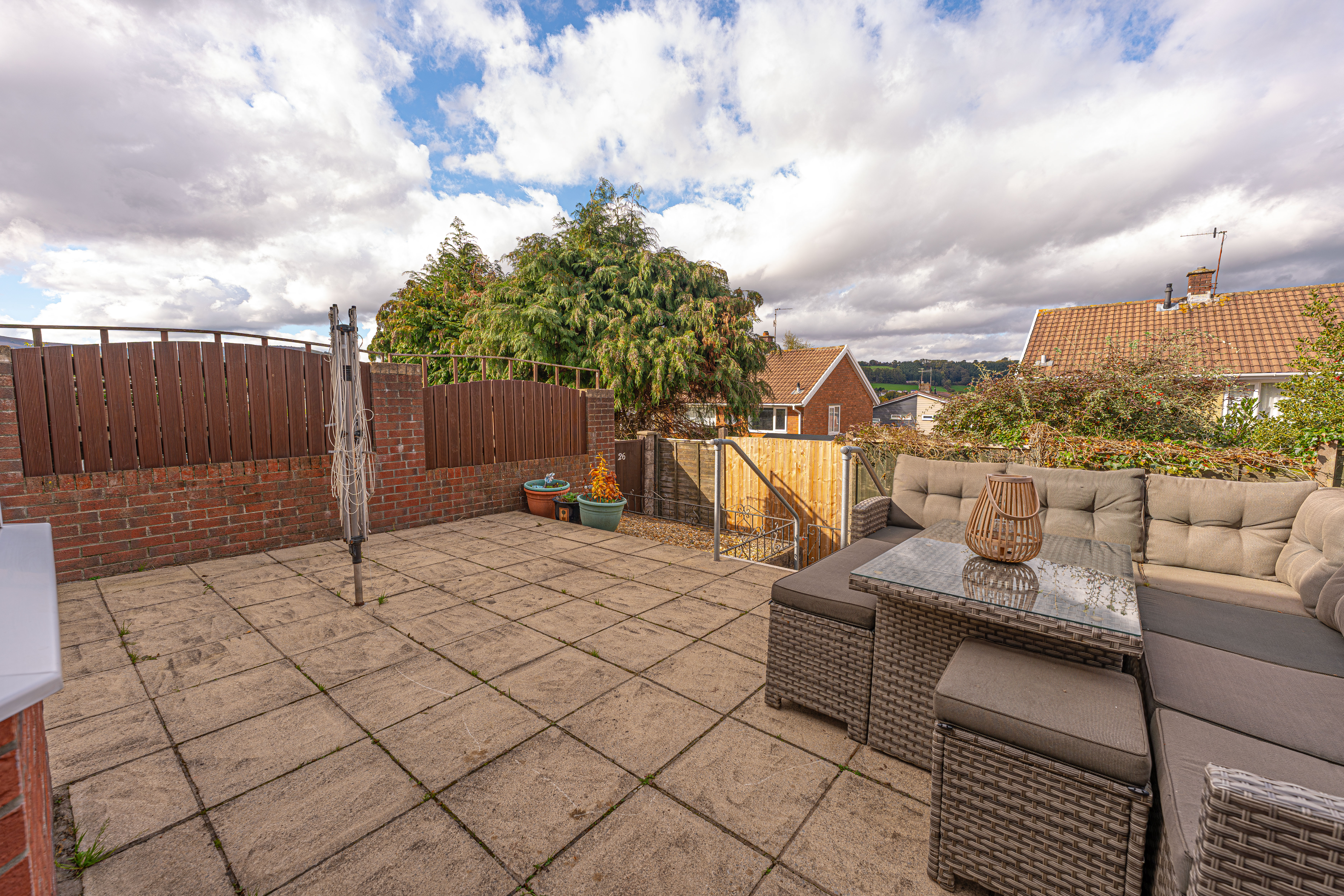 The outdoor areas are a particular highlight of the property, with a spacious patio at the rear of the house that is perfect for relaxing, entertaining, and dining al-fresco style, with a wonderful low maintenance finish. The patio also connects to a pathway for another entry point to the home. At the front of the house we can find further outdoor space and kerb appeal with a well-presented lawn, which overlooks a communal green and provides a warm welcome to the property. The property also benefits from a garage to the rear for storage or off road parking.