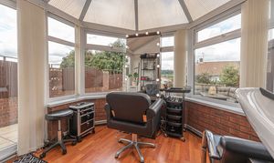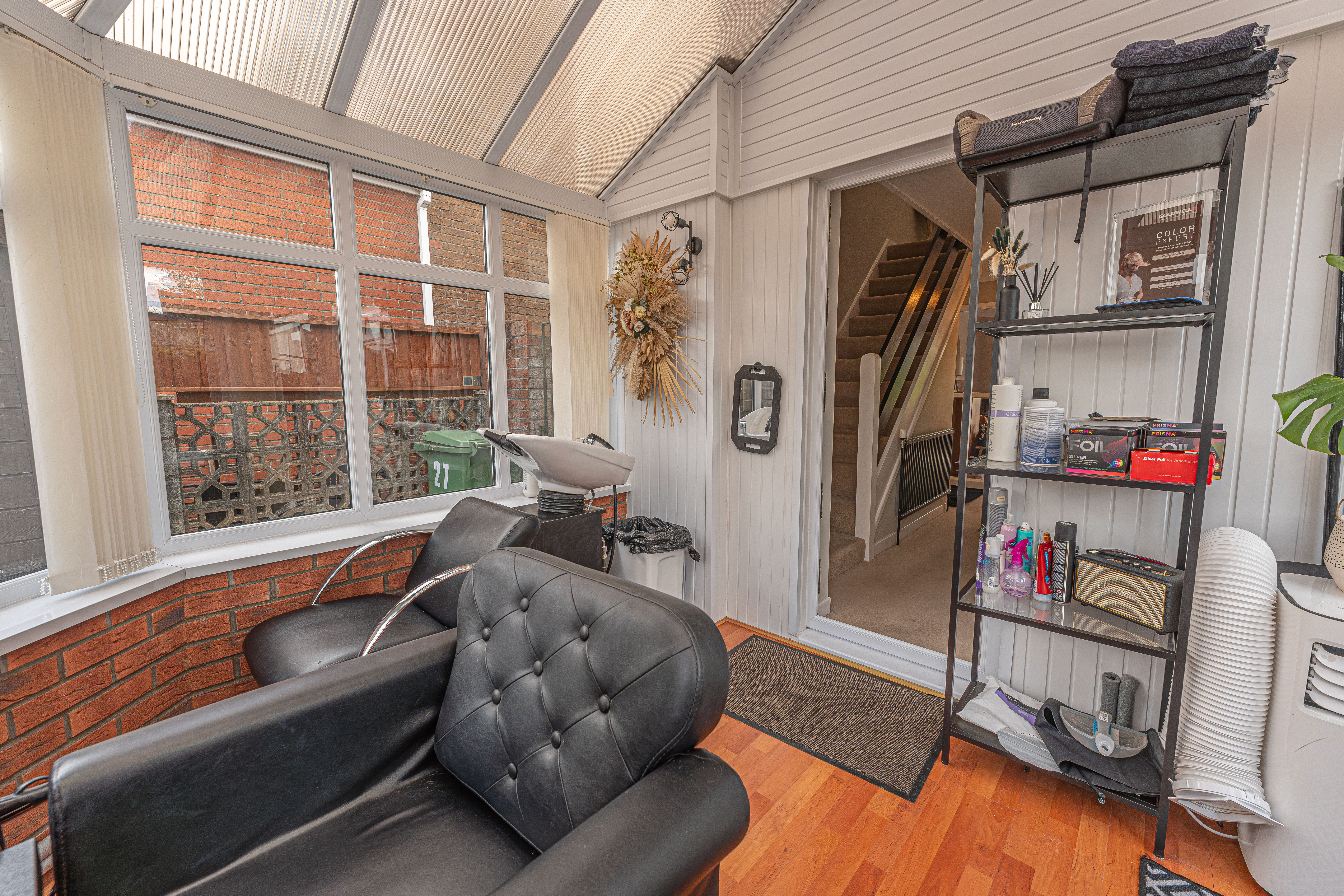 On the ground floor we have a spacious living room at the front of the house , which is lit up by a large window, flooding the room with natural light and highlighting a great space for relaxing/entertaining. Continuing through the house so we can find the kitchen which is well equipped with plenty of storage space amongst the fixtures and multiple fitted cupboard. The kitchen also has room for multiple appliances, and can double up as dining room or breakfast nook. Set the rear of the house is the conservatory, and offers another reception space that is bathed in light. The conservatory is currently in use as a marvellous home salon, and features fitted plumbing to provide a great deal of versatility for future residents.