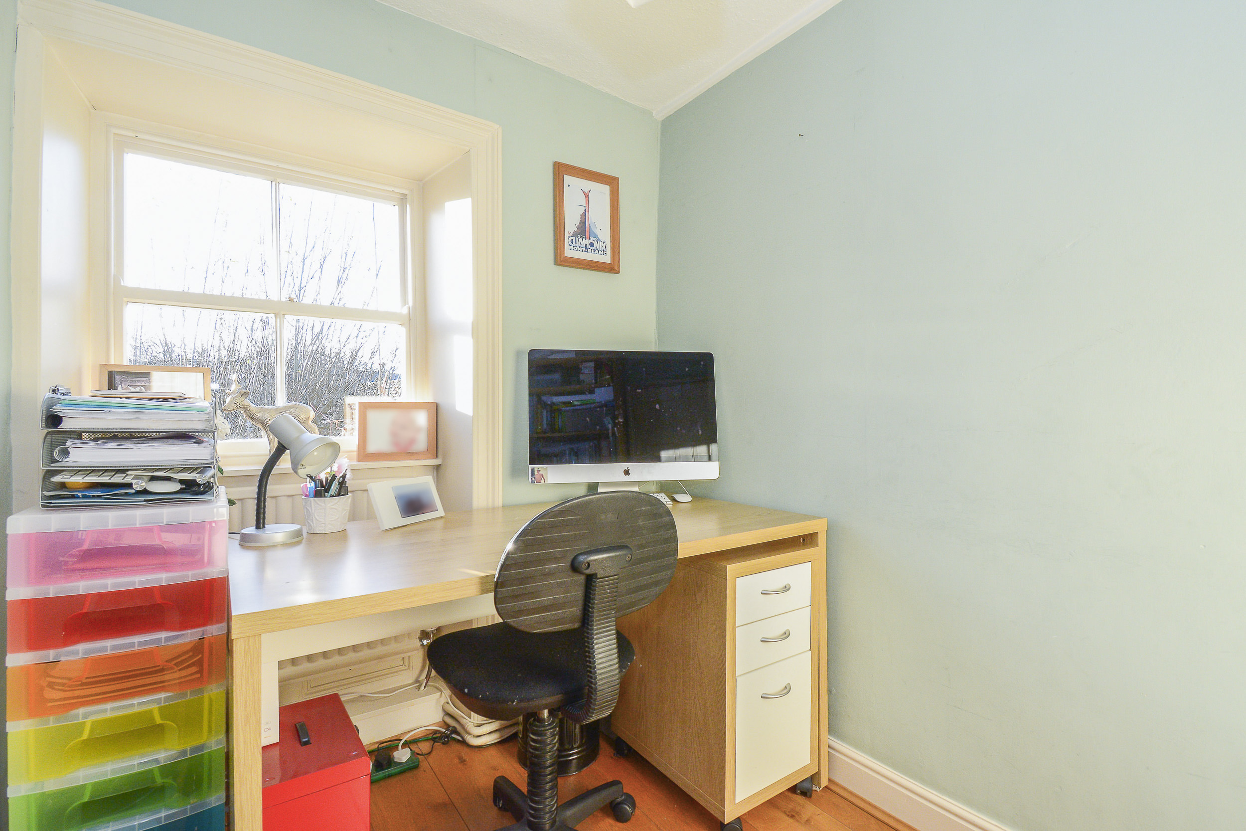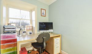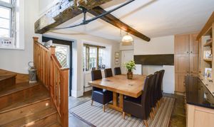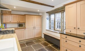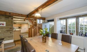 This is situated adjacent to the living room and has a bank of three sash windows providing the room with plenty of natural light and enjoying a lovely aspect over the south facing garden. There is a beamed ceiling with inset downlighters, central heating radiator and as the main focal point of the room there is a stone fireplace together with a stone flagged hearth.