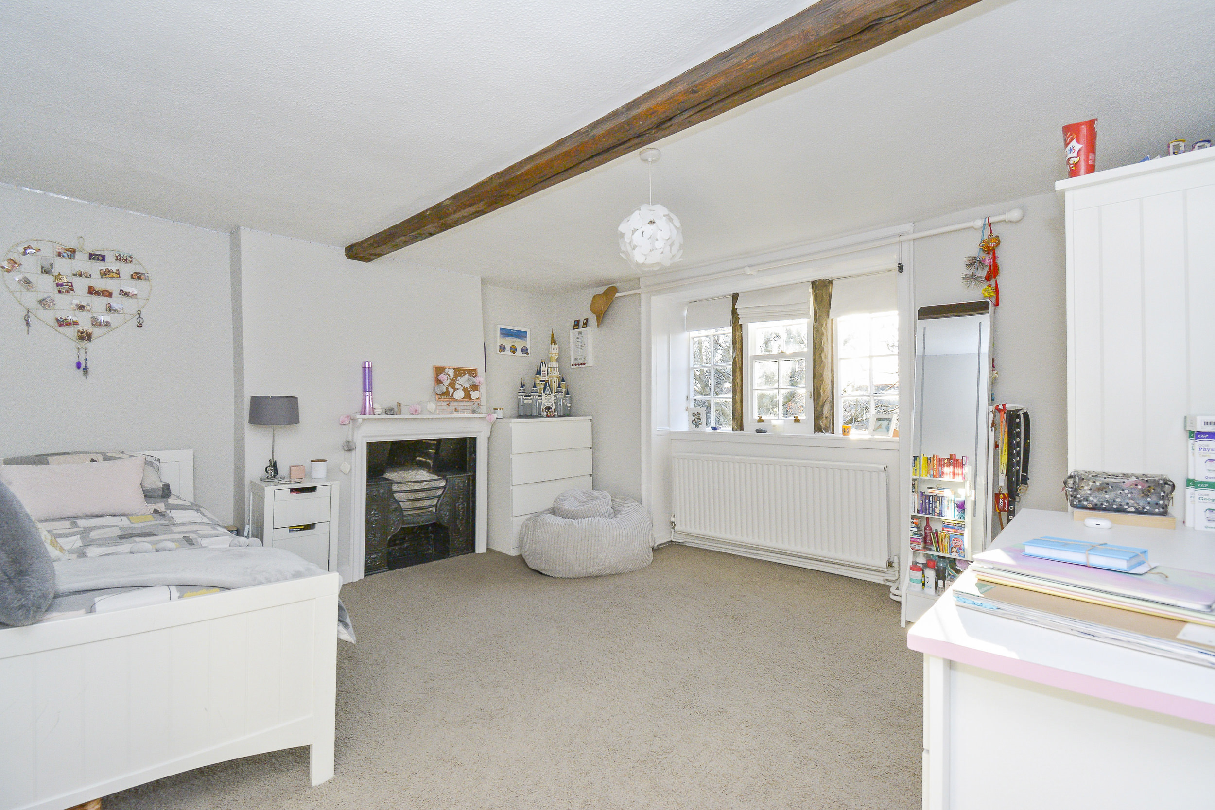 Another good-sized double room situated adjacent to bedroom one and with three light stone mullioned windows looking out across the south facing garden, there is a beamed ceiling with ceiling light point, central heating radiator and chimney breast with a decorative inset black cast iron fireplace.