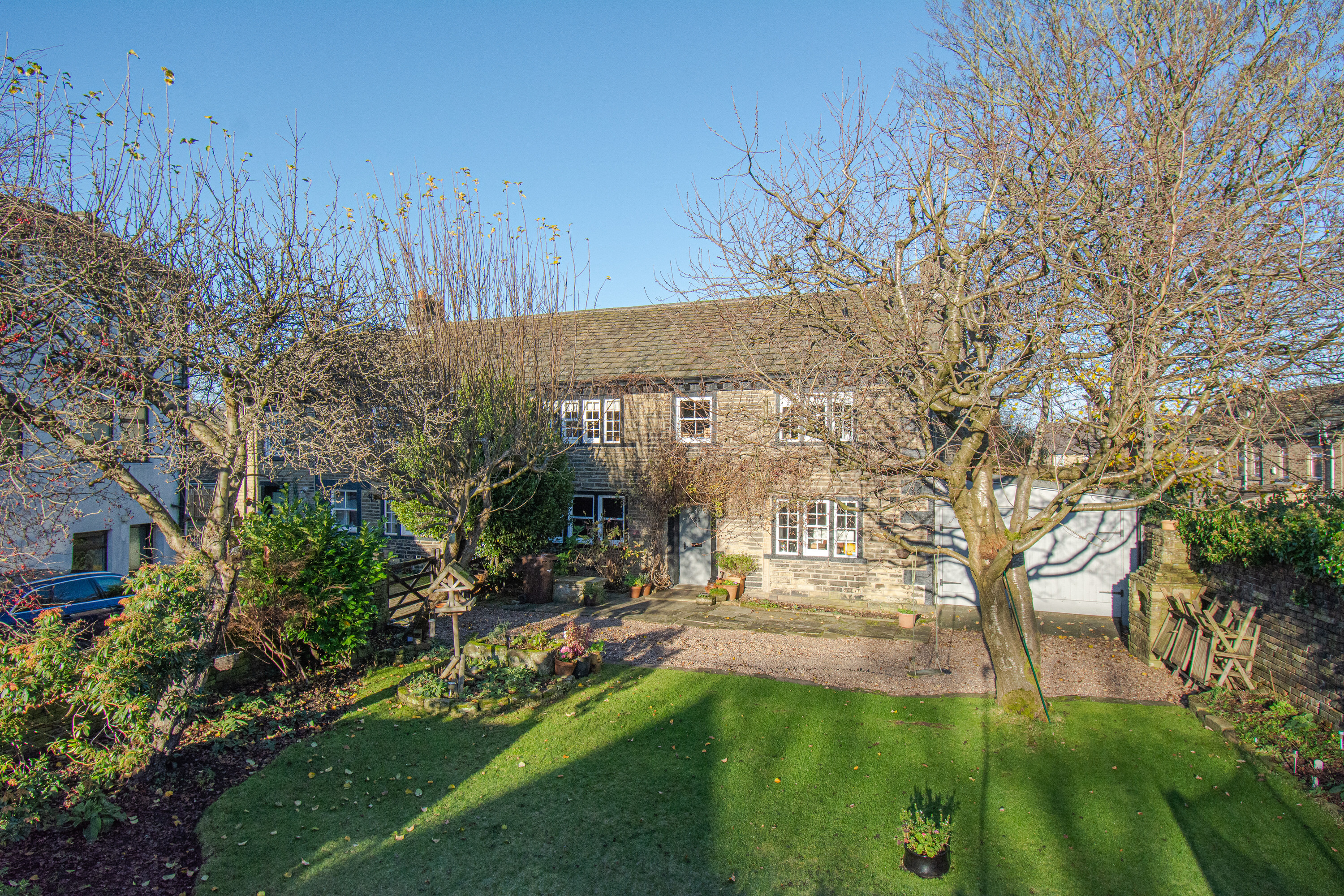 A charming Grad II listed stone double fronted cottage overlooking a part walled south facing garden and tucked away off a small cul-de-sac. This lovely family home with character in abundance occupies a terrific location within one of Huddersfield’s most sought after villages with the local junior and infant schools, shops, restaurants and bars all in walking distance. There is nicely balanced and well-planned accommodation which briefly comprises to the ground floor: entrance hall, living room, sitting room, dining area and kitchen. Wine cellar. First floor three generous double bedrooms, study/ bedroom four and large luxury family bathroom. Externally there is a gravelled driveway running across the property providing off road parking and leading to an attached garage. There is also a south facing part walled lawned garden.