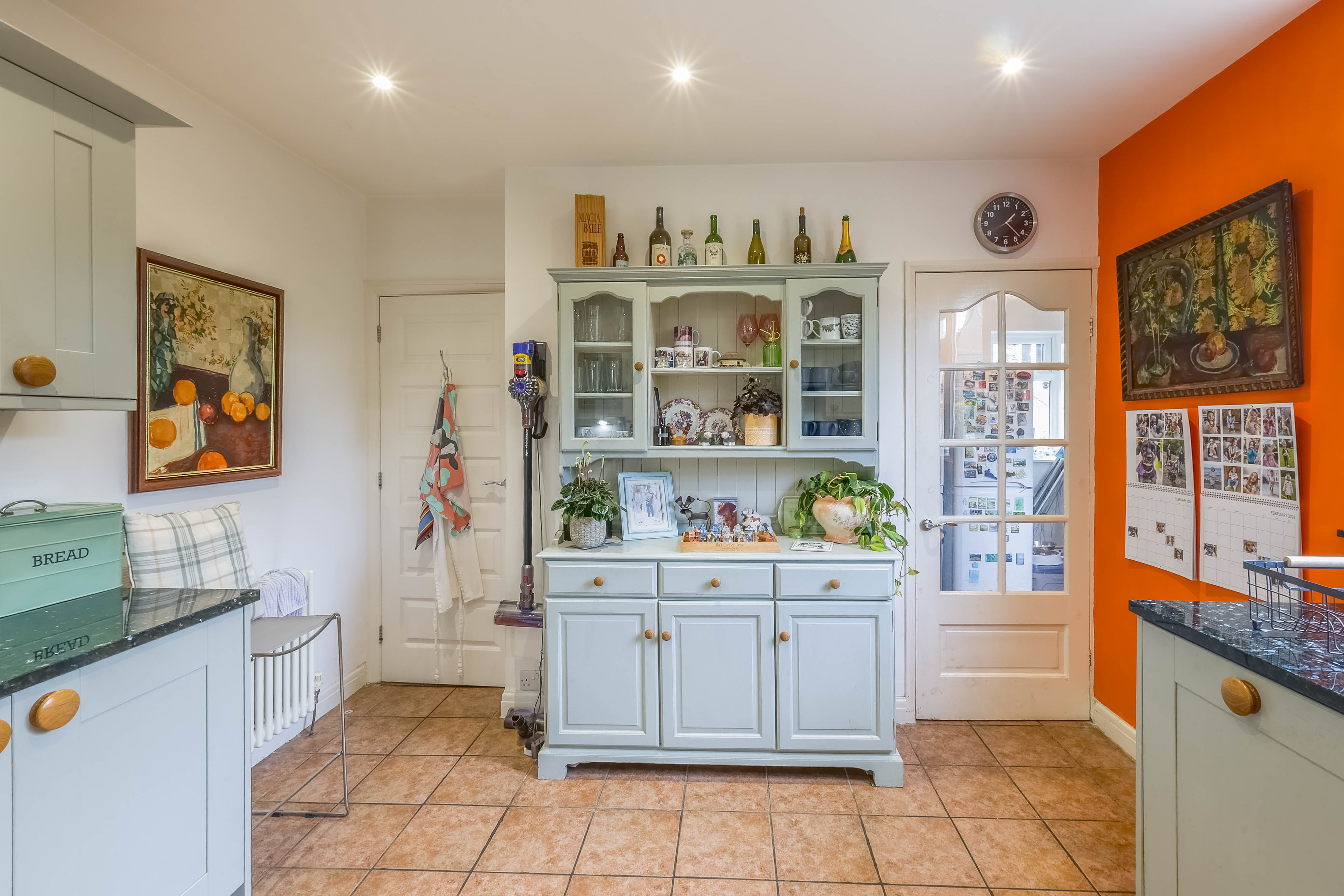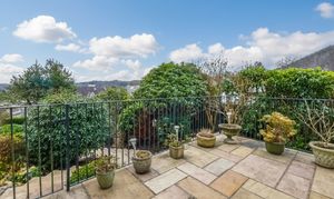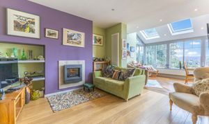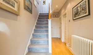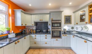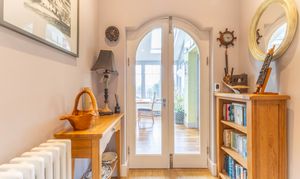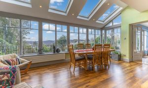 The ground floor offers a warm and welcoming layout, introduced by a lovely entrance with a striking glass arched door that sets the tone for the rest of the home. The shaker style cottage kitchen is both charming and practical, fitted with wooden units and granite worktops that complement the character of the property. The living room features a gas fire, creating a cosy focal point, and opens seamlessly into the dining area where huge windows draw in natural light and frame stunning views. A further reception room on this level is currently arranged as a study offering flexibility to suit a variety of needs. A separate utility room and a convenient downstairs WC complete the ground floor accommodation.