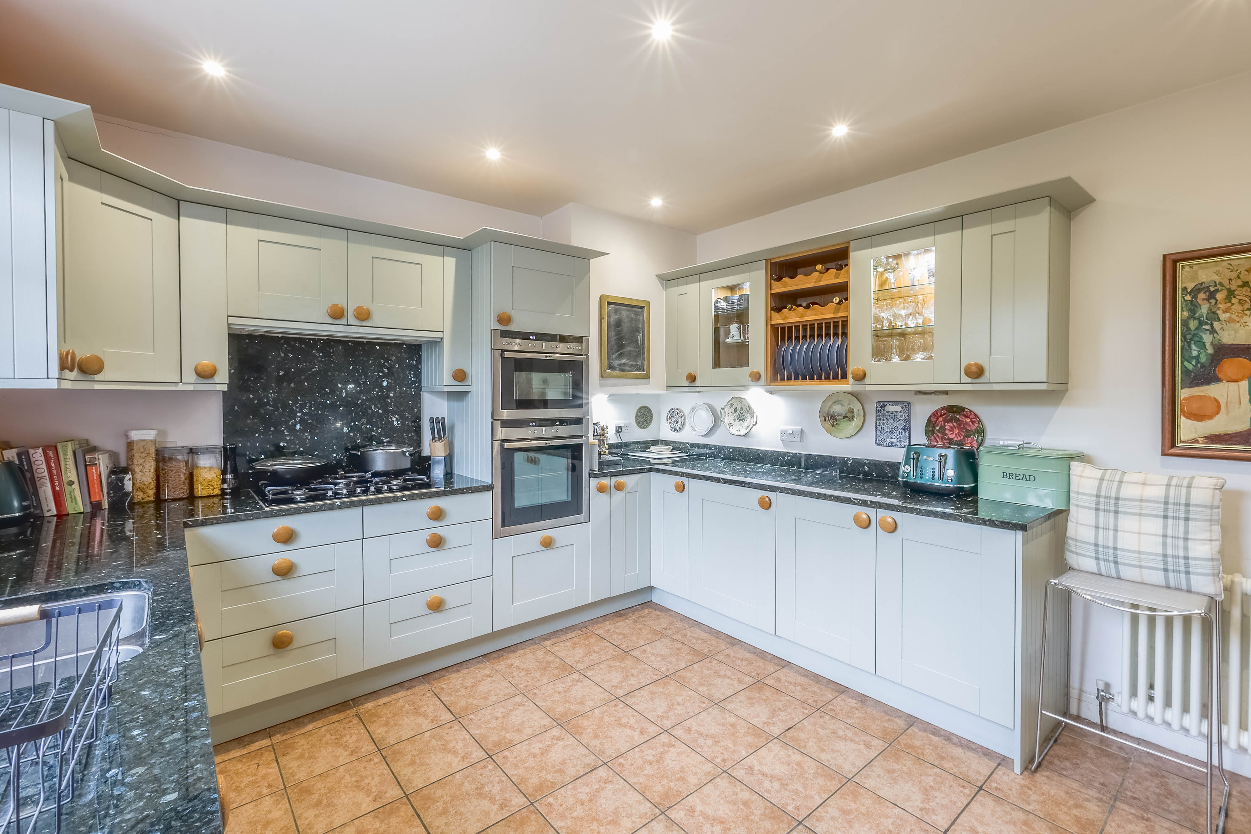 - Charming shaker style cottage kitchen with wooden units and granite worktops