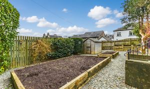 Externally, the property is surrounded by beautifully landscaped gardens that wrap around the house, creating a sense of space and privacy. Multiple patio areas provide ideal spots for outdoor dining and entertaining, while established planting and vegetable patches add colour and charm throughout the seasons. A garage and ample driveway parking further enhance the practicality of this delightful home.