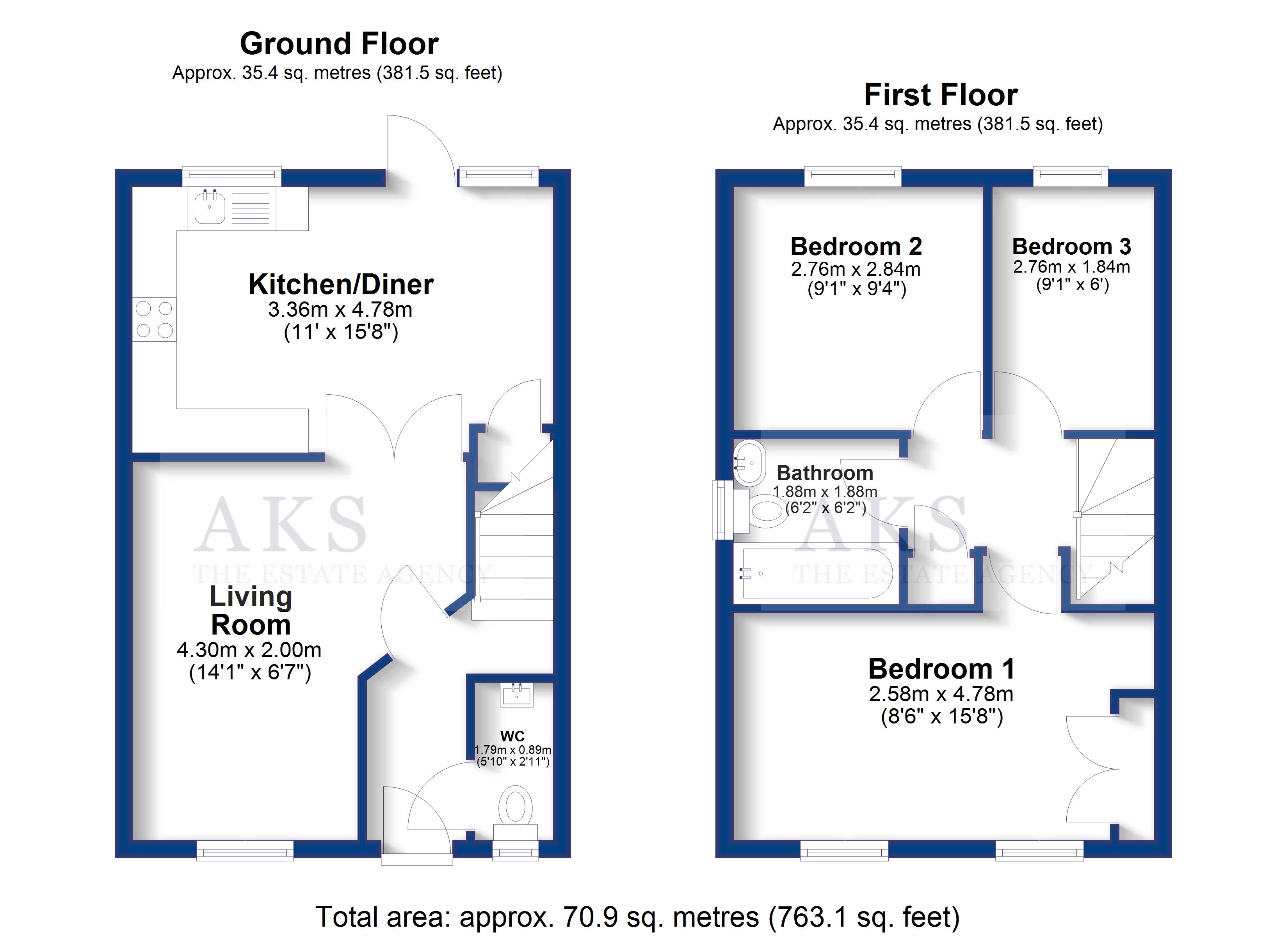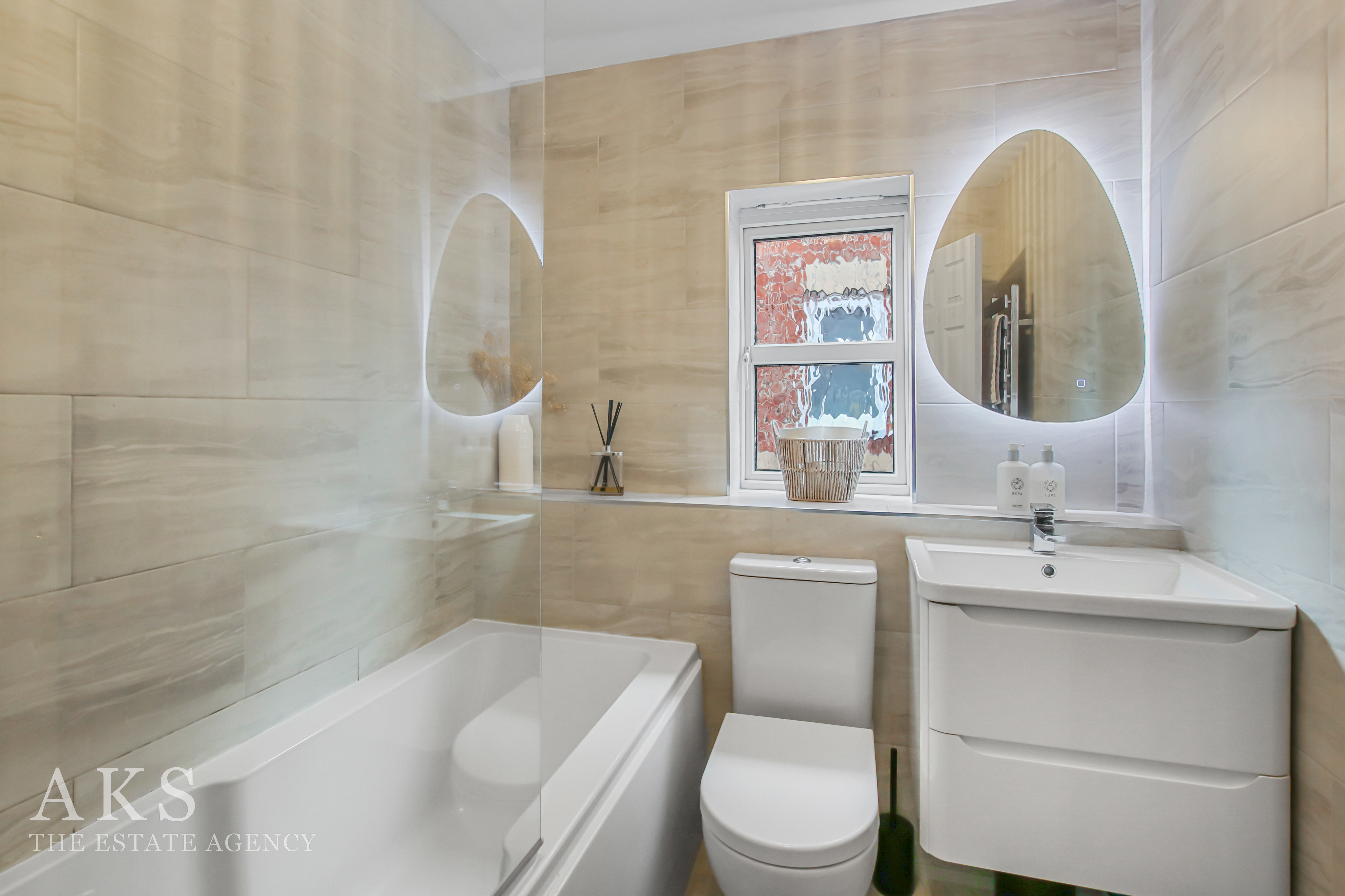 Upstairs, there’s three spacious bedrooms, each thoughtfully laid out. The main bedroom is a peaceful space with a large built-in wardrobe, great for storage. The two single bedrooms, tucked away at the back of the house, are ideal for children, guests, or even a home office. The newly fitted bathroom is sleek and neutral, the perfect calming space to relax and unwind.