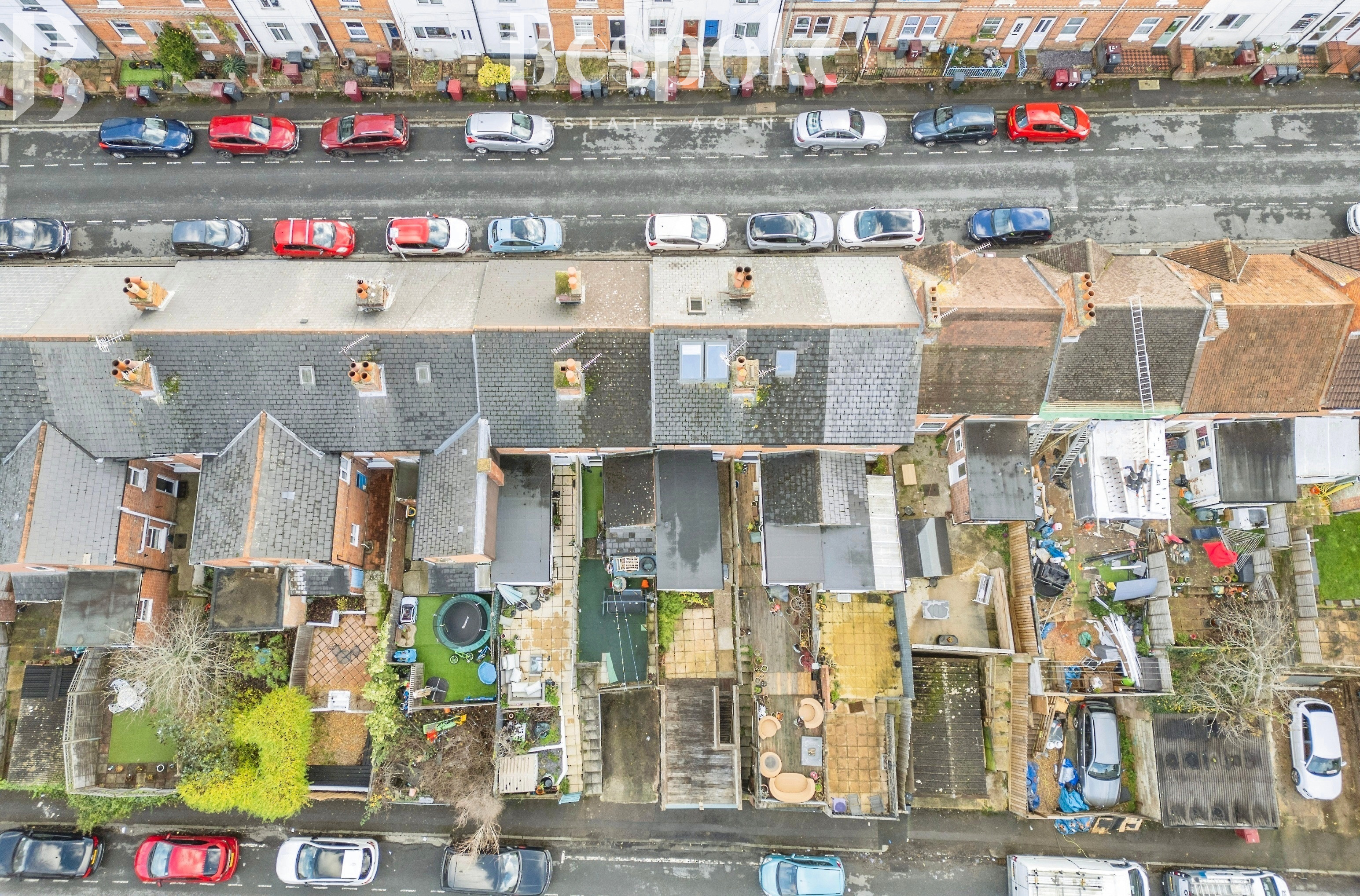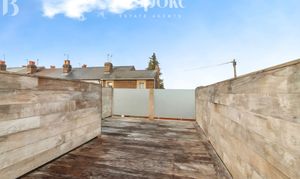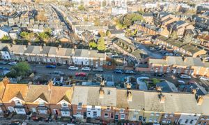 To the front, the property is set behind a traditional wrought iron fence with gated access, leading to a neat, low-maintenance paved garden that enhances the period charm of the terrace. The rear garden is a particular highlight, positioned on an elevated level to enjoy far-reaching views across Reading. Designed for ease of maintenance, the garden features a raised decked terrace ideal for outdoor seating and entertaining, with timber and glazed screening providing privacy, alongside paved areas and planted borders.