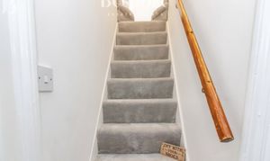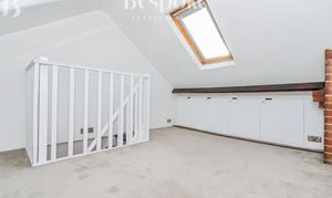 Bedroom two is a well-sized and versatile room positioned at the rear of the property, enjoying a quiet rear aspect and finished in a soft, neutral palette following recent redecoration. The room benefits from brand new carpets, continuing the fresh and move-in-ready feel throughout the home. A rear-facing window provides natural light, while the layout comfortably accommodates a bed and additional furniture. A feature fireplace adds character and reflects the period charm seen across the property. An internal staircase rises from this room to the loft room, making bedroom two an ideal option as a guest room, home office, or flexible living space with direct access to the upper level. The room is well proportioned and thoughtfully arranged, offering excellent adaptability to suit a range of needs.