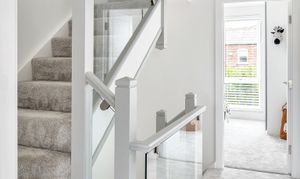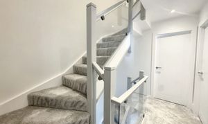 Glass balustrade to the second floor level. Internal doors leading through to: