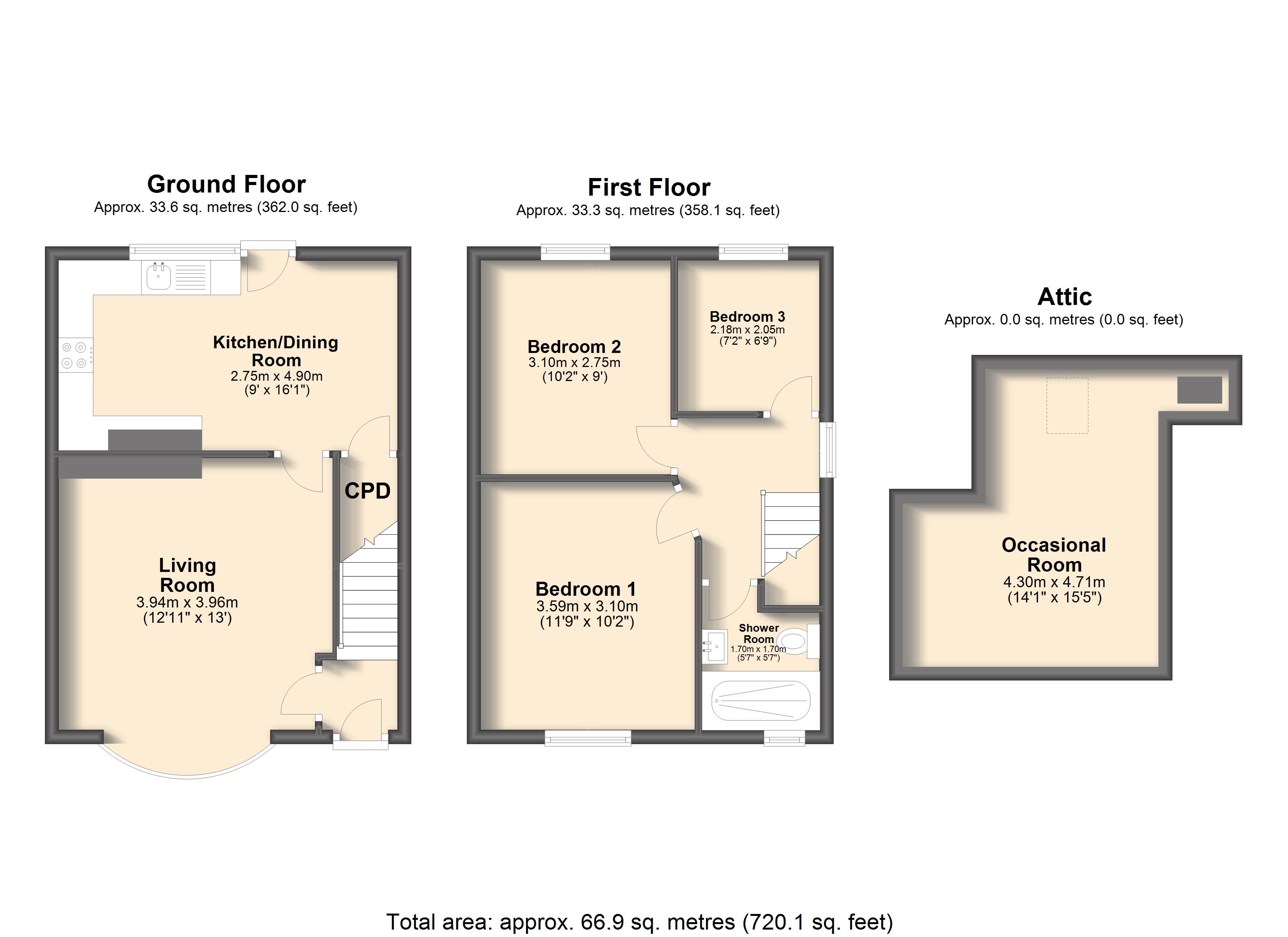 - Approx Sq Feet: 720 sqft