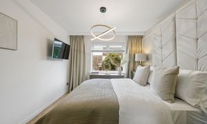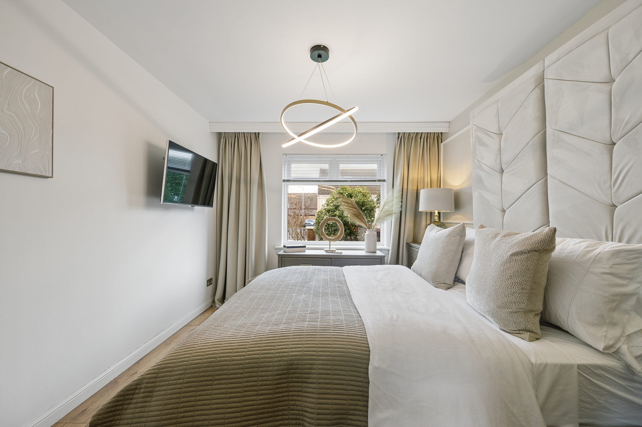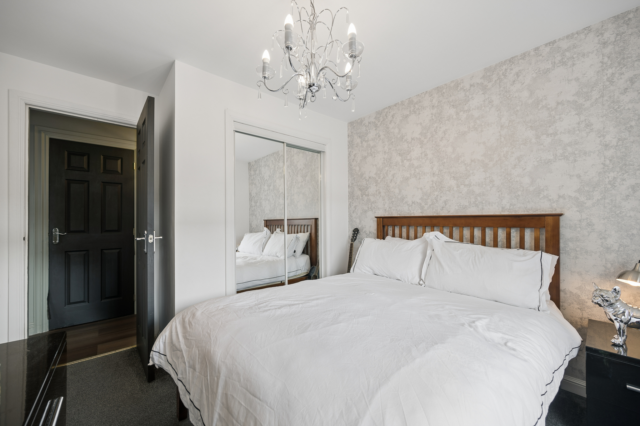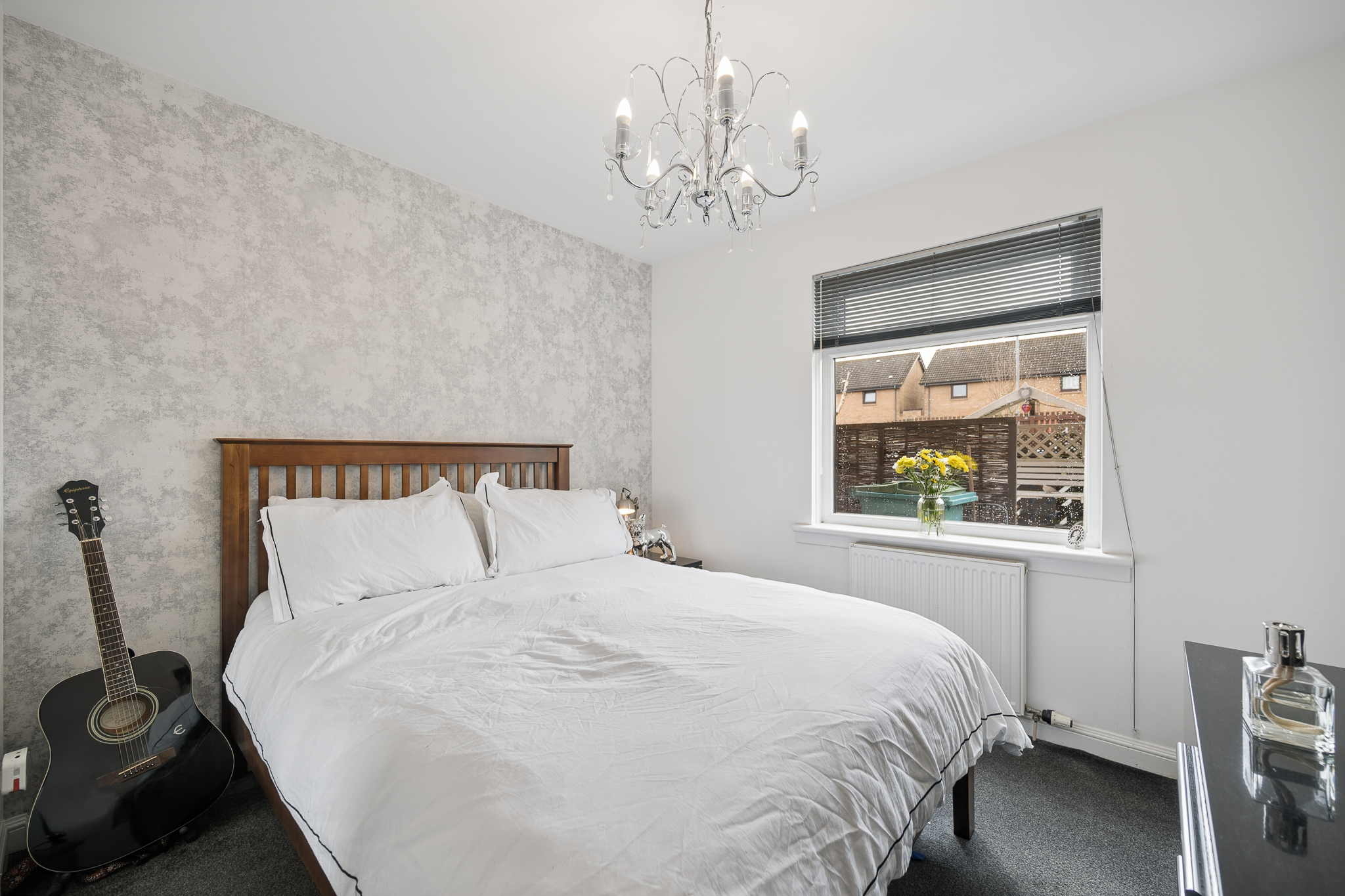 Directly across the hallway is bedroom two, another well proportioned double room. Currently styled as a flexible space, it offers versatility to suit a range of needs, whether as a guest bedroom, home office or additional living area.