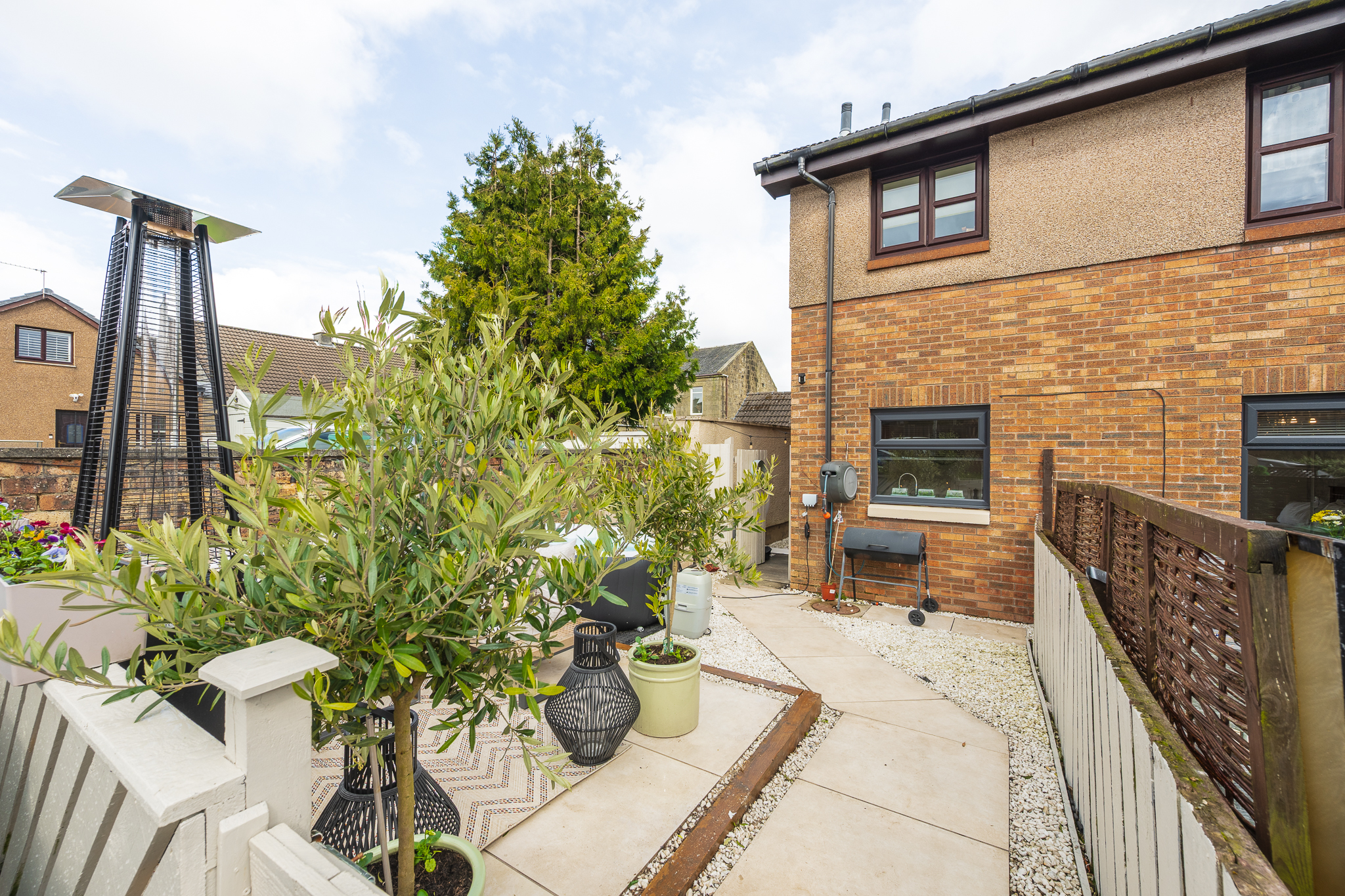 Externally, the rear garden has been designed with ease of maintenance in mind, featuring a stylish combination of paving and decorative stone. With a west facing aspect, this space enjoys beautiful afternoon and evening sun, making it ideal for relaxing or entertaining as the sun sets. The layout provides multiple seating areas, creating a private and sociable outdoor retreat.