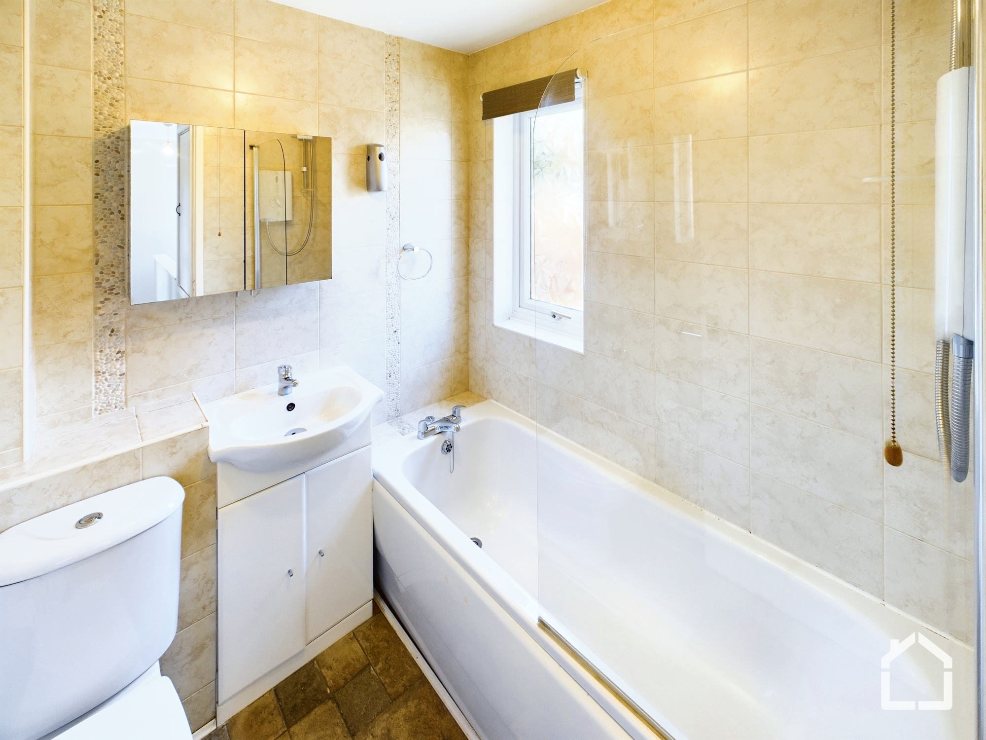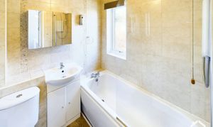 The first floor consists of two bedrooms arranged off the landing, along with a bathroom fitted with a bath and overhead shower, wash basin, and WC.