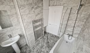 To the first floor, there are two generous double bedrooms, including a large king-size main bedroom and a second well-sized double. Completing the accommodation is the main bathroom, which has been recently fitted and tiled, offering a modern three-piece suite with a shower over the bath.