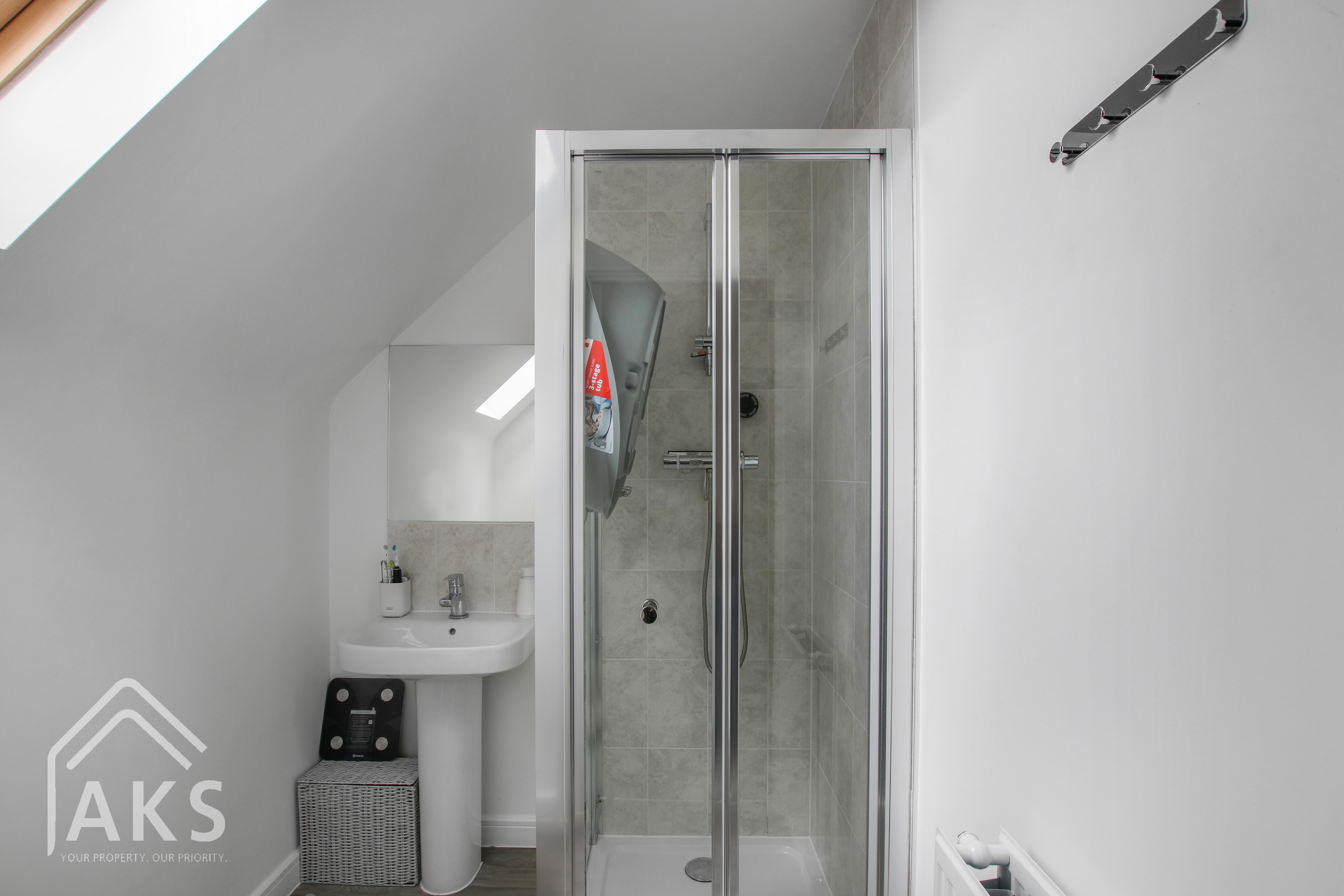 The middle floor has 3 generously sized bedrooms with 2 doubles and 1 single. The high quality built in furniture gives a great finish to the bedrooms. Bedroom 2 and 3 have double wardrobes and bedroom 4 has a practical desk, located at the back of the home, this would make a great space to hide away and get some work done. The main bedroom is at the top of the house, with the continuation of the fitted wardrobes as well as the modern en-suite shower room with velux window making this a great self-contained area of the house.
