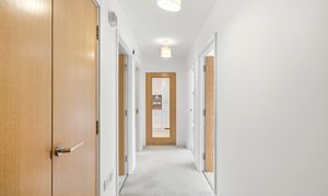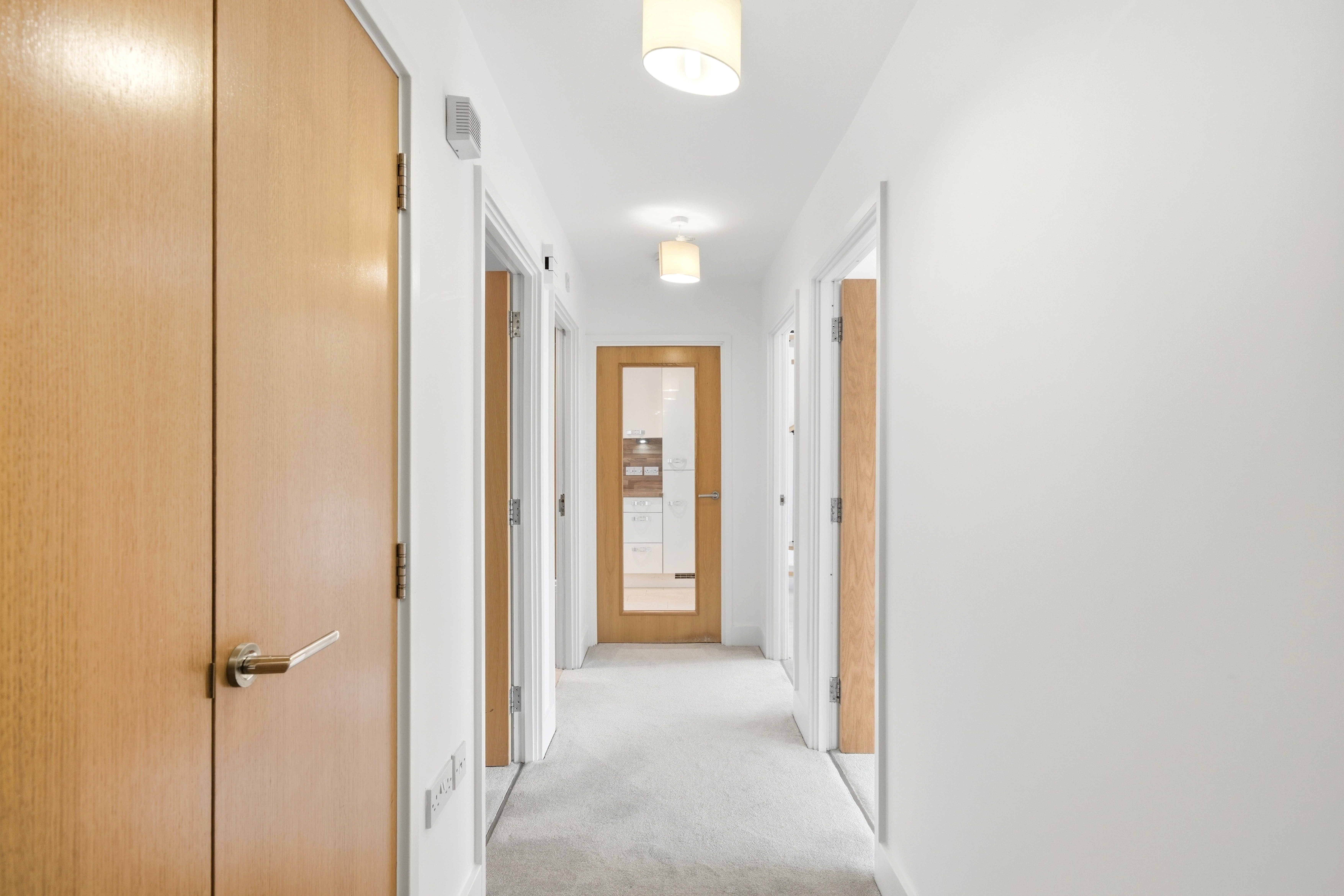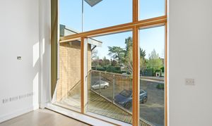 The property is accessed via a private entrance leading to a generous first floor landing. The main living space is a standout feature, with a large living and dining room providing an excellent area for both relaxing and entertaining which also provides access to a south facing balcony to the front aspect of the development. The separate kitchen is well arranged with ample storage and workspace.