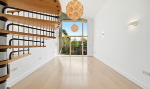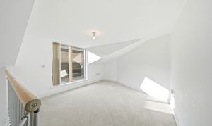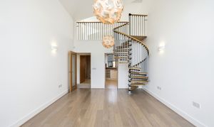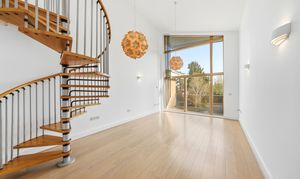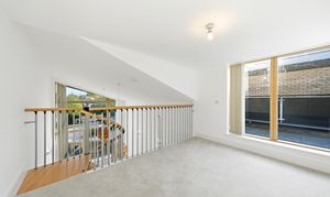 A spiral staircase leads to the second floor where the property continues to impress, offering a striking open gallery space overlooking below, ideal for use as a study or additional living area. This leads through to a a fantastic private roof terrace, creating a superb outdoor space with elevated views. The property also benefits from an allocated parking space, as well as a telecom gated entrance that leads to eight flats and six townhouses which all surround the communal courtyard.