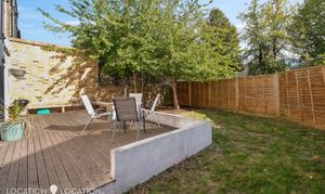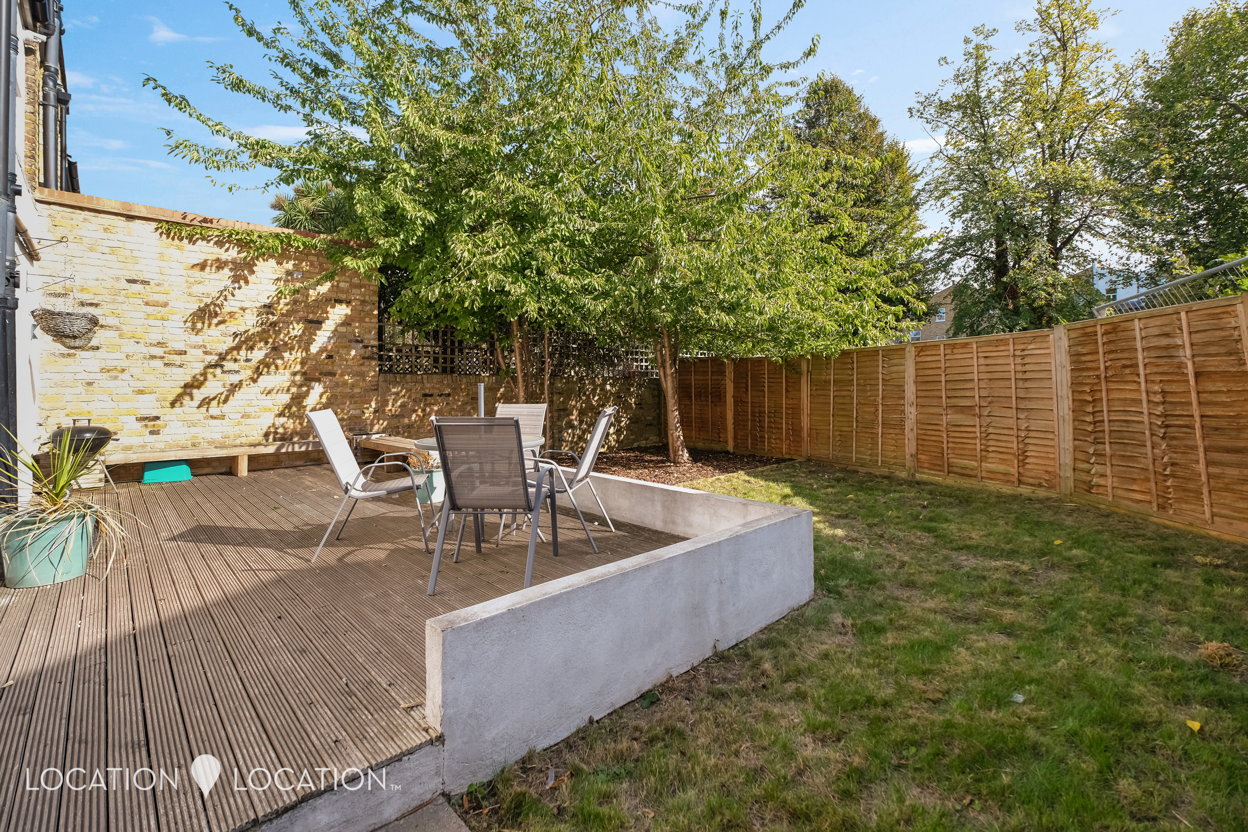 The shared rear garden has been cleverly designed to create space for alfresco dining, and for catching sunshine from early morning into the afternoon/evening, too.