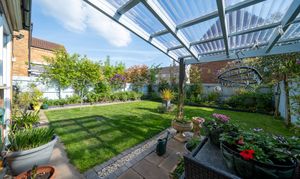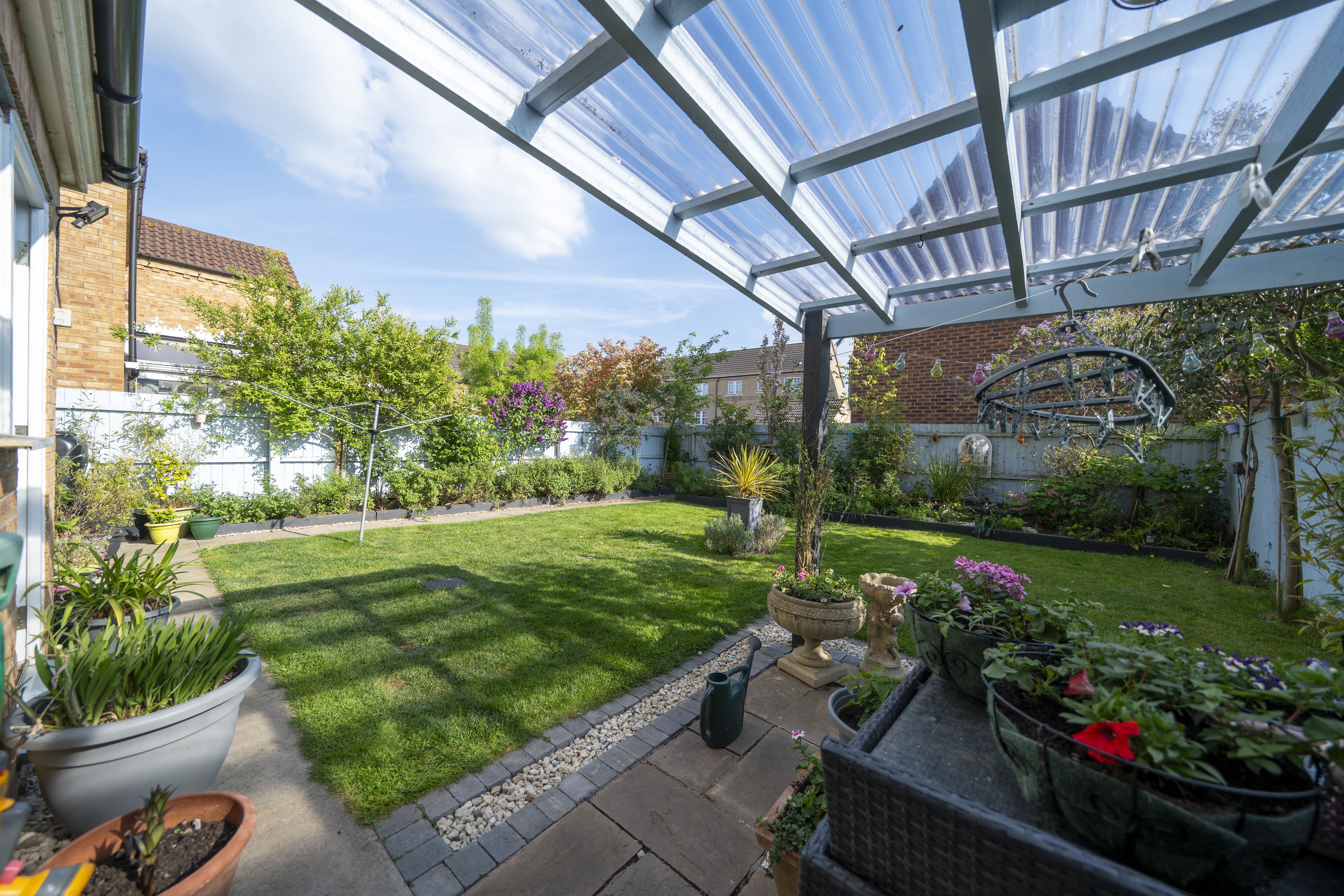 Outside, the fully enclosed south facing rear garden provides a tranquil haven designed for relaxation and outdoor enjoyment. The space features a well-maintained lawn, painted fence, well stocked borders and a charming covered patio area perfect for al fresco dining. This outdoor space is not directly overlooked, ensuring privacy and allowing you to unwind in peace.