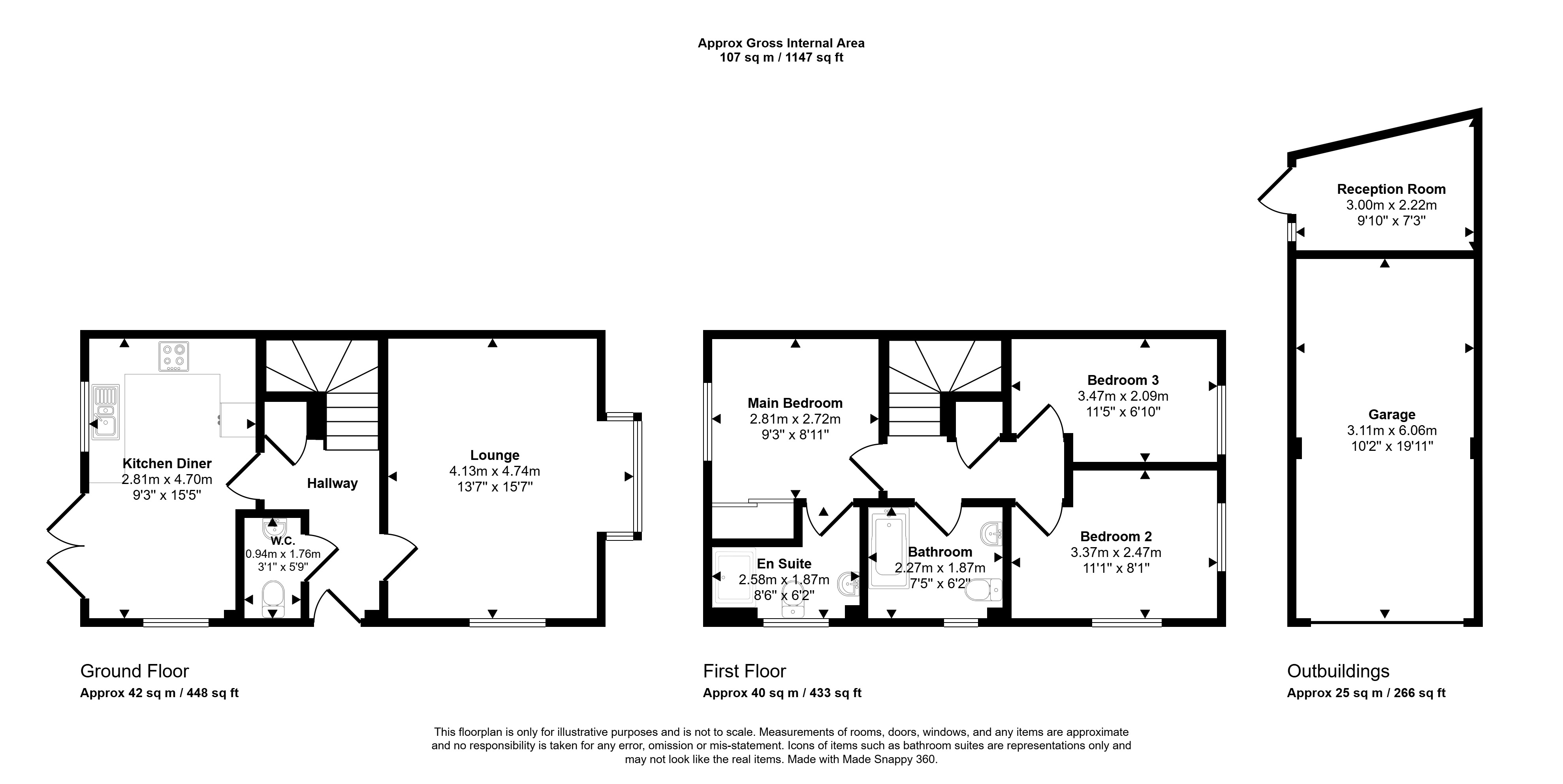 Inside, the property is well-appointed, with a spacious kitchen/diner featuring integrated appliances, including an oven, fridge, and freezer. The main bedroom boasts fitted wardrobes and an en suite with a walk-in shower, offering a private retreat. The family bathroom is equipped with a bath for ultimate relaxation. There is also a convenient downstairs WC.