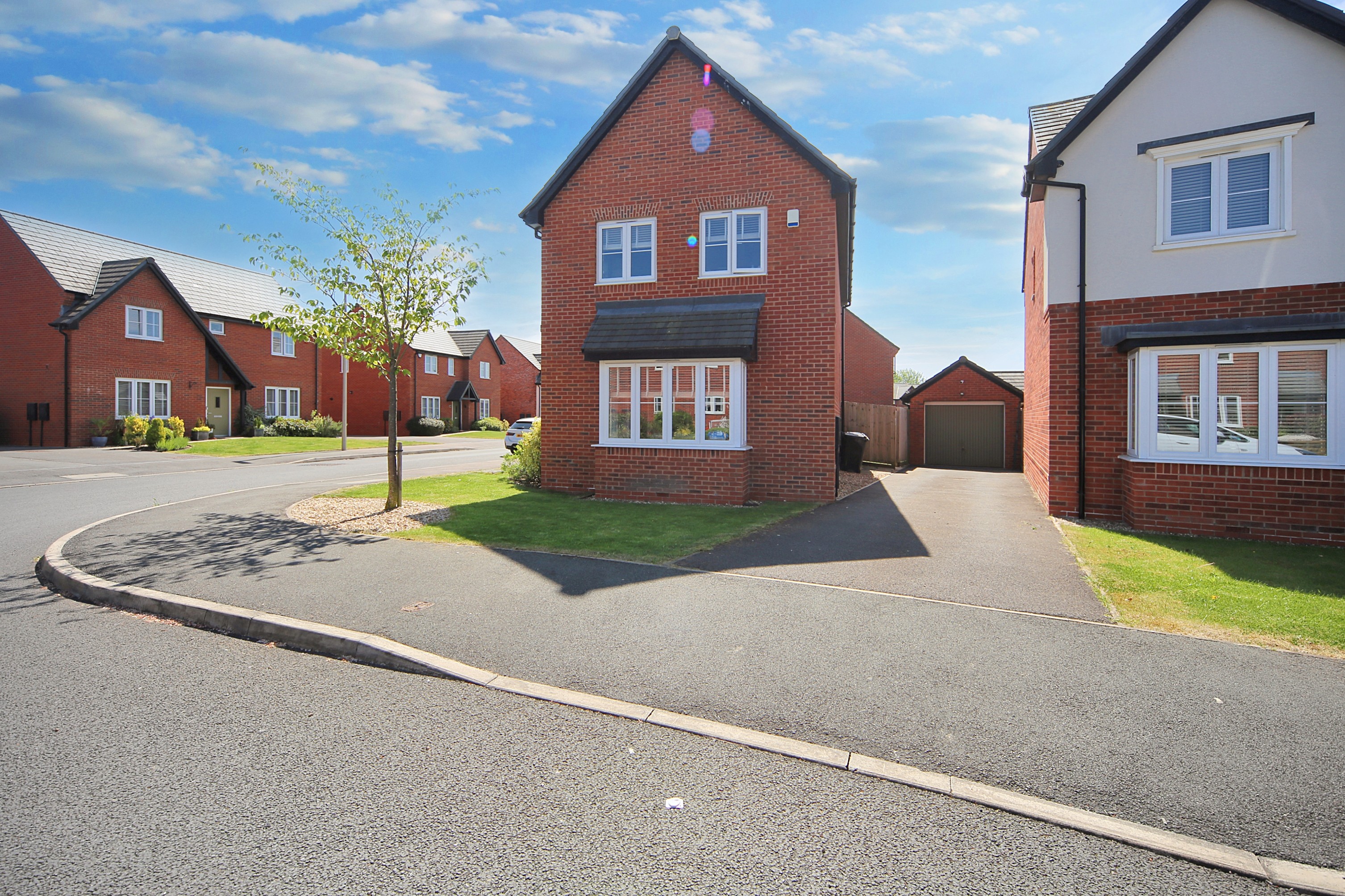 - Three-bed detached, corner plot with detached garage