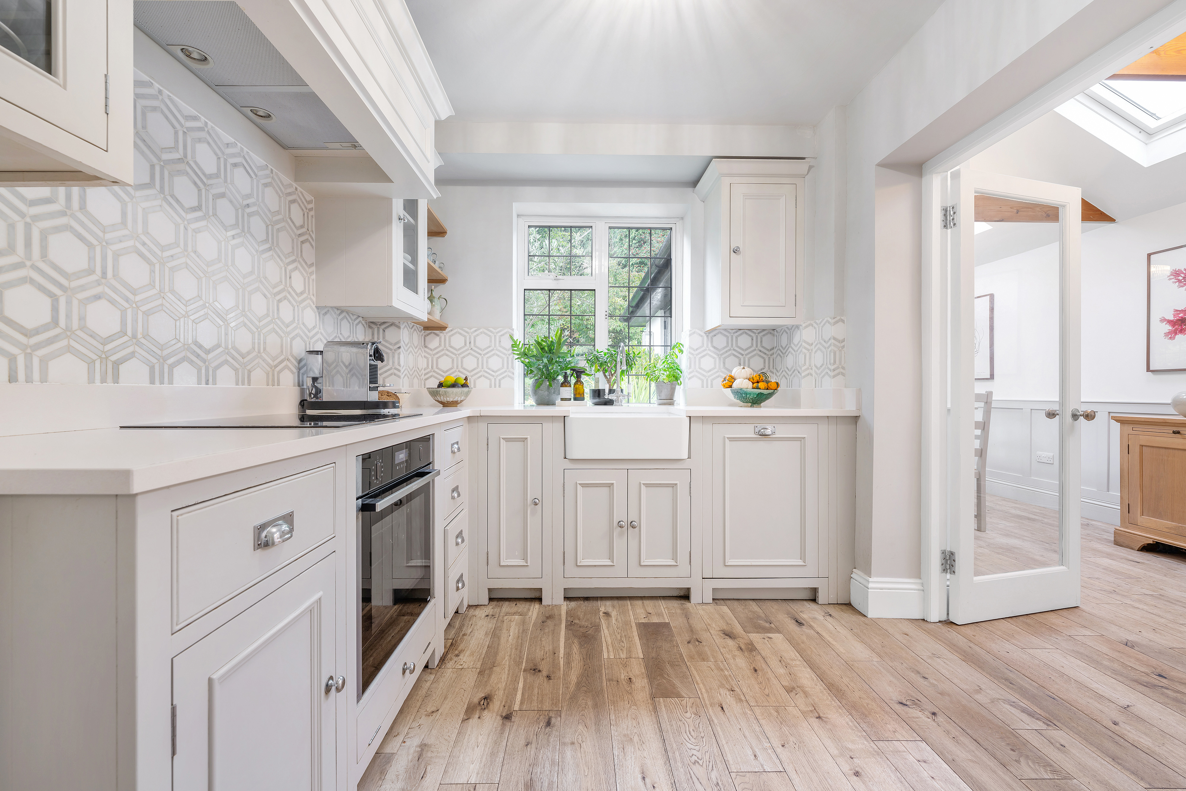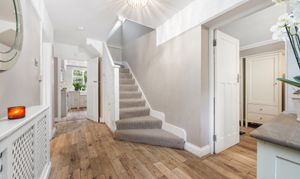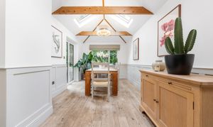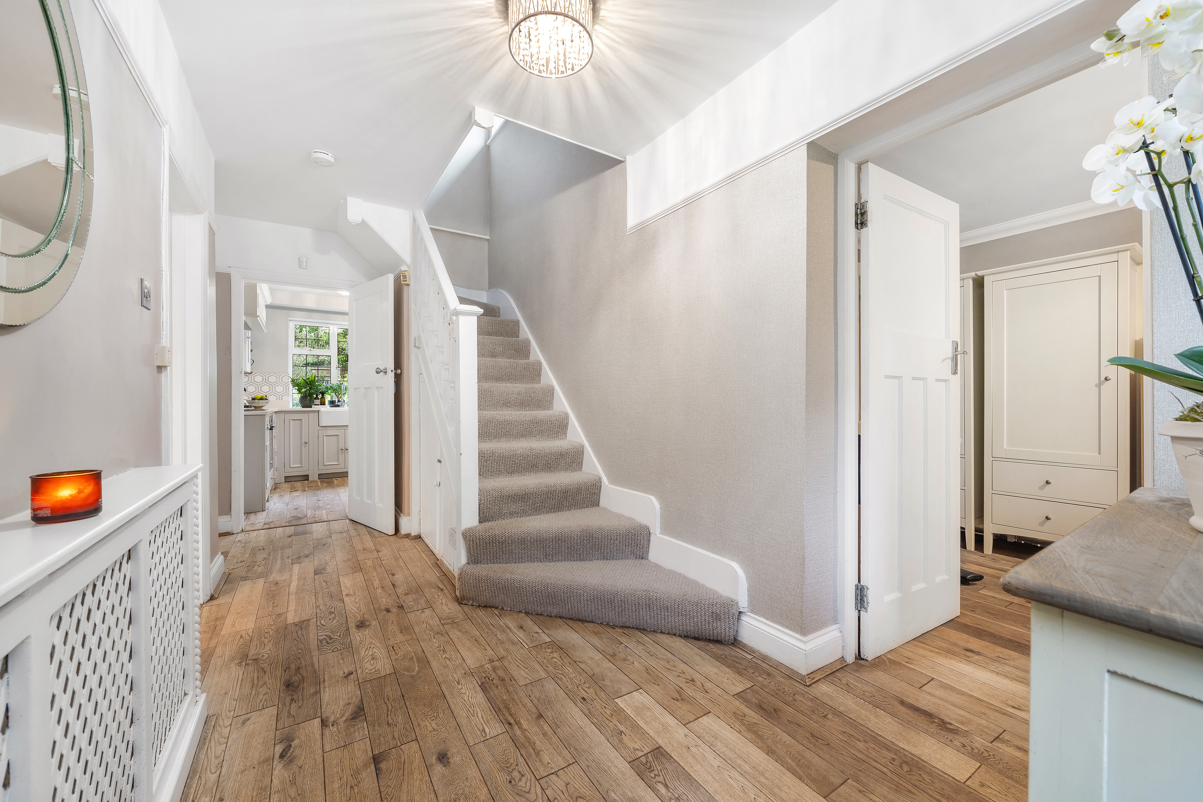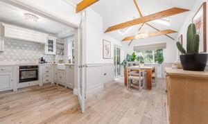 The property was built in the 1930’s, has been extended by the current owners and offers versatile accommodation. The house has been well maintained and has a mixture of character and contemporary designs, the ground floor comprises, entrance hallway, bay fronted sitting room with wood burning stove and limestone surround, and second reception room which could be used as a playroom/family room with french doors to the garden. The Neptune kitchen is traditional in style and has a range of exposed hinged wall and base units, butler sink, Caesarstone worksurfaces, integrated dishwasher, induction hob and extractor, Neff oven, larder cupboard, plate racks and casement doors to the dining room/orangery. This space is great for entertaining, the room has decorative beams, Velux windows and larger windows bringing in the natural light. The property also benefits from a utility room with space for a washing machine and tumble dryer, and a guest bedroom with ensuite shower room, limestone tiled wall and flooring, floating handwash basin and corner shower enclosure. Other features to note, cast iron radiators, engineered wood flooring, bespoke blinds and plantation shutters, leaded light windows and wood panelling.