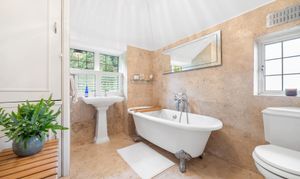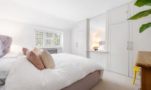 To the first floor there are three bedrooms, some with a range of bespoke fitted cupboards, wardrobes and wall panelling. The family bathroom is finished with limestone tiles, has dual aspect windows, freestanding bath with mixer tap attachment, handwash basin and storage cupboard. The property also benefits from having an insulated loft space with ladder and light.