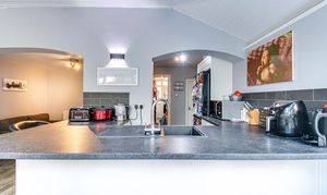 Rear facing upvc window, base and wall units, plumbed for washer and wall mounted Worcester Boiler approx 7 years old