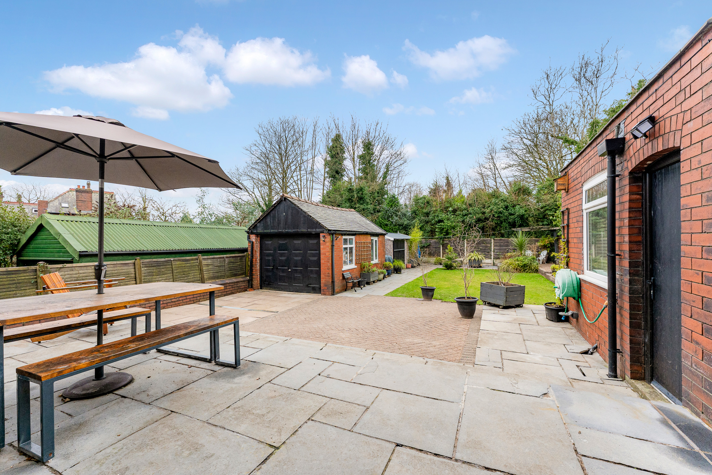 - Private, generously sized rear garden with defined areas for seating, entertaining and play